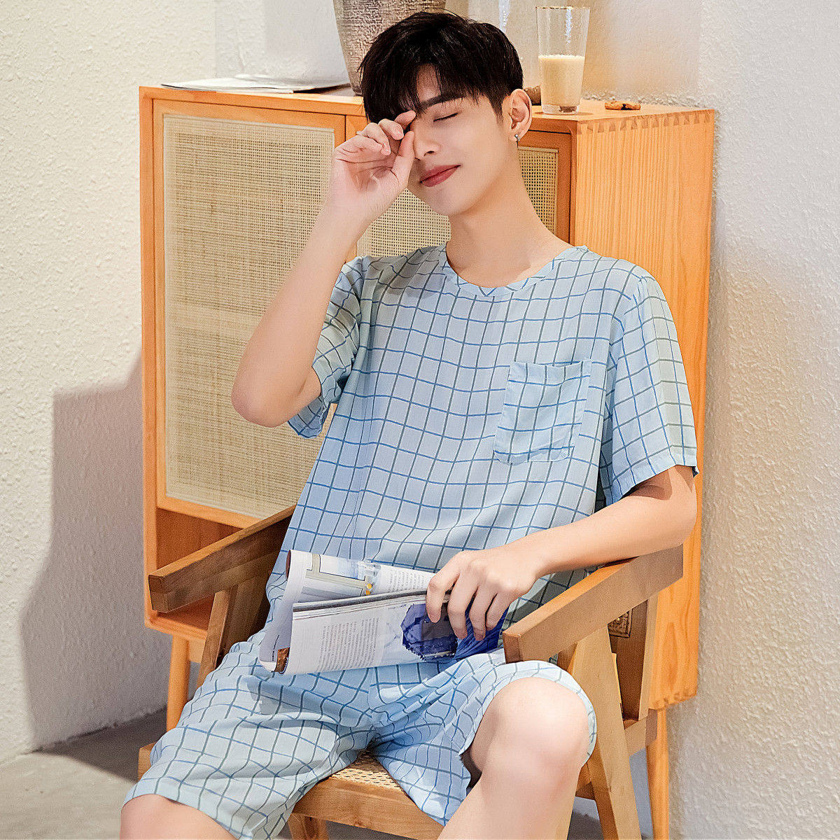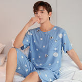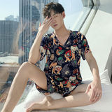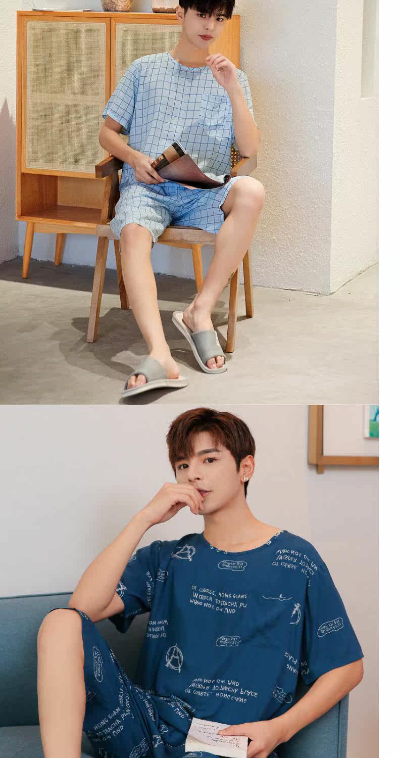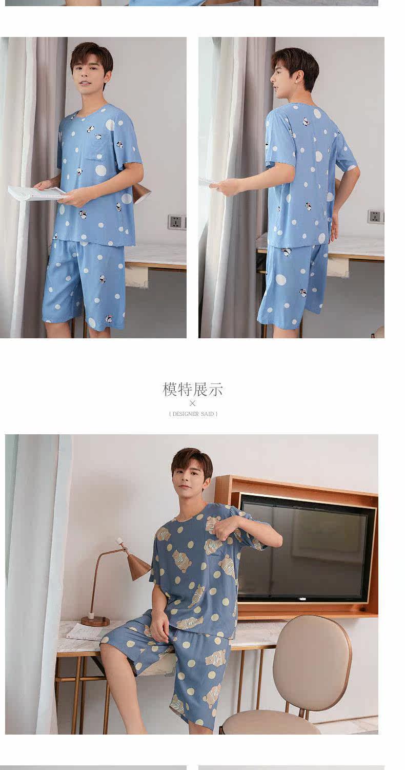 Летняя тонкая пижама, мужские шорты, комплект, короткий рукав, большой размер
