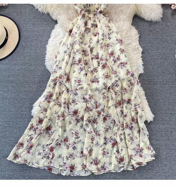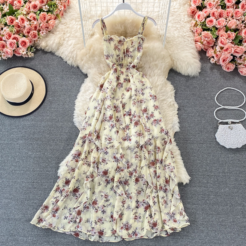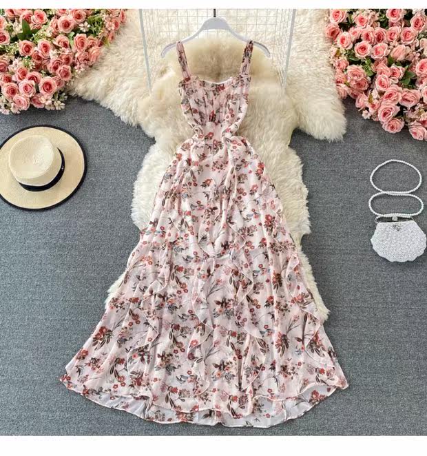 Летнее платье, летний приталенный корсет, длинная юбка, цветочный принт, длина макси