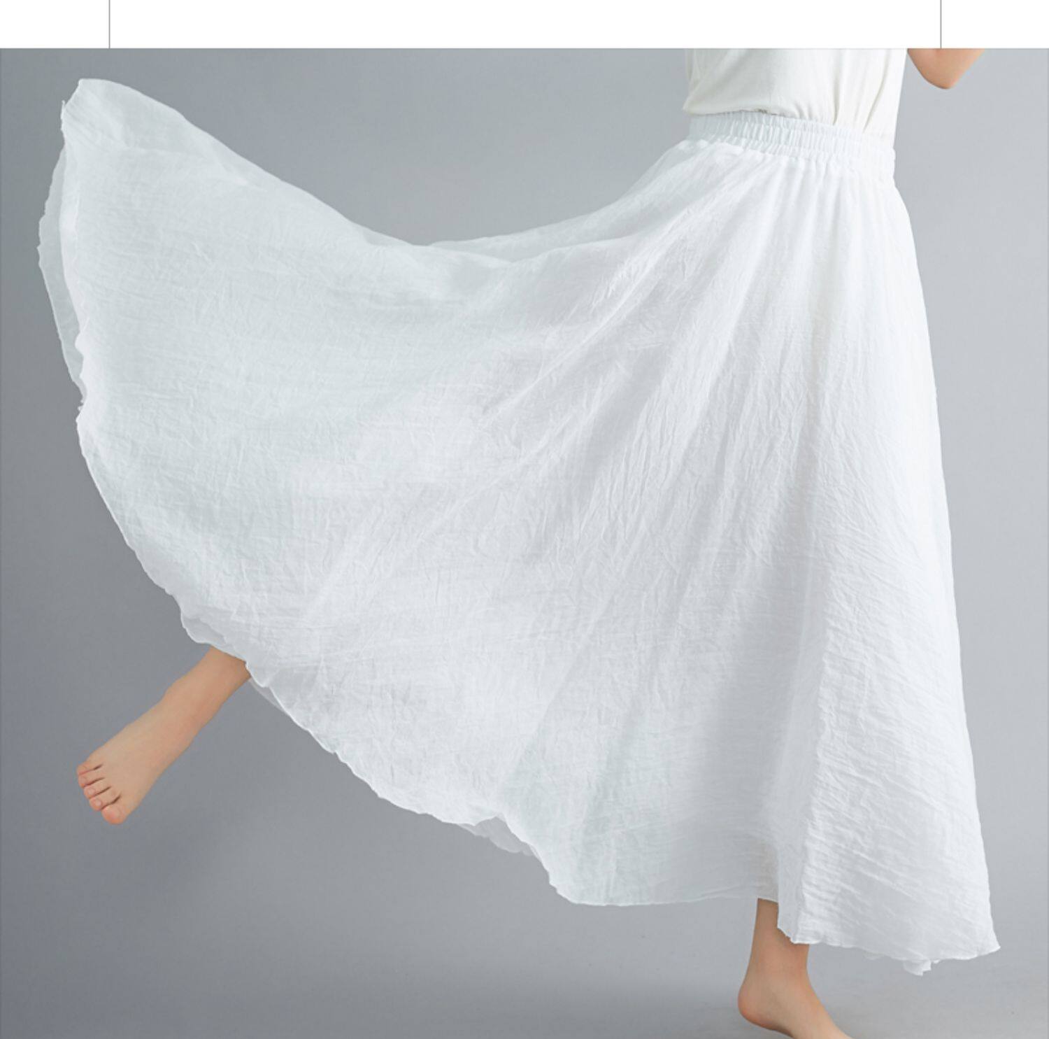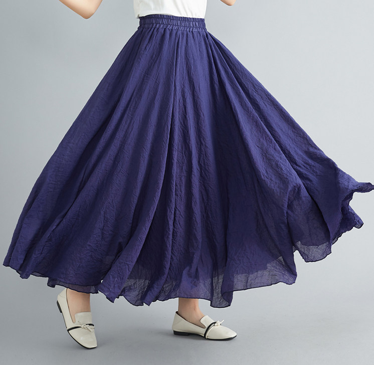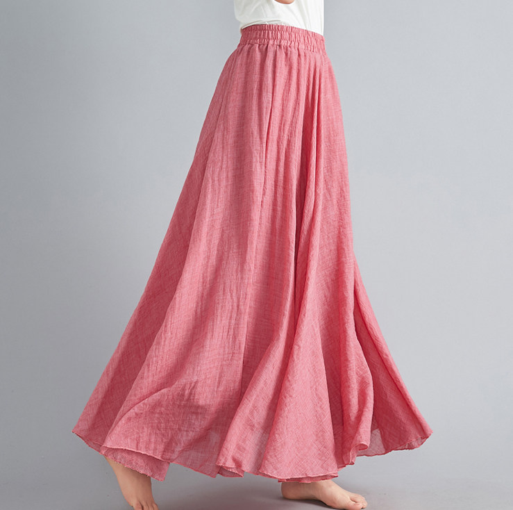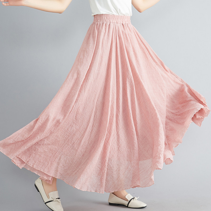 Юбка, из хлопка и льна, большой размер, эластичная талия, А-силуэт, свободный крой