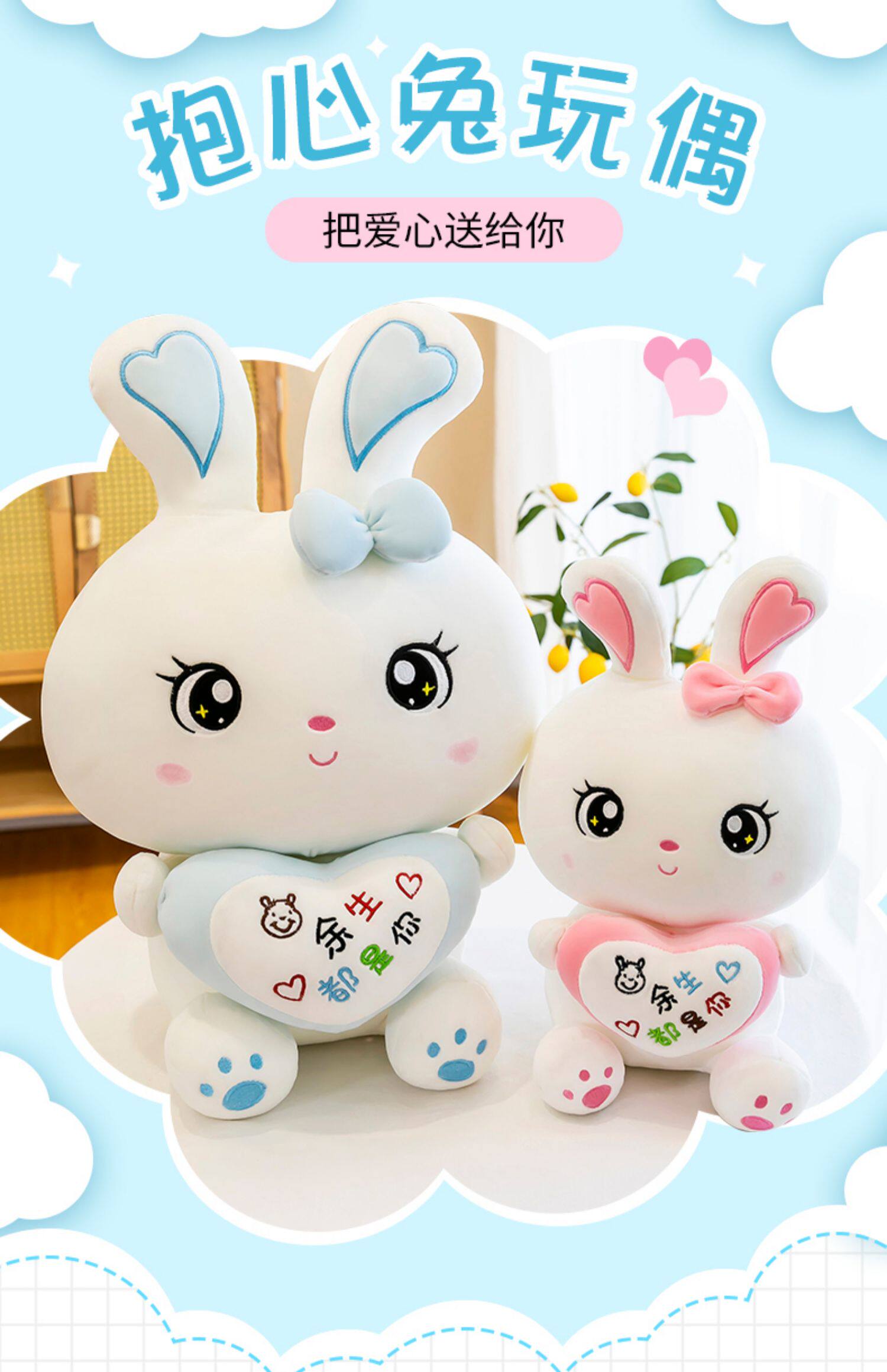 Милая плюшевая игрушка, кролик, подушка для сна, тряпичная кукла, белый кролик, подарок на день рождения