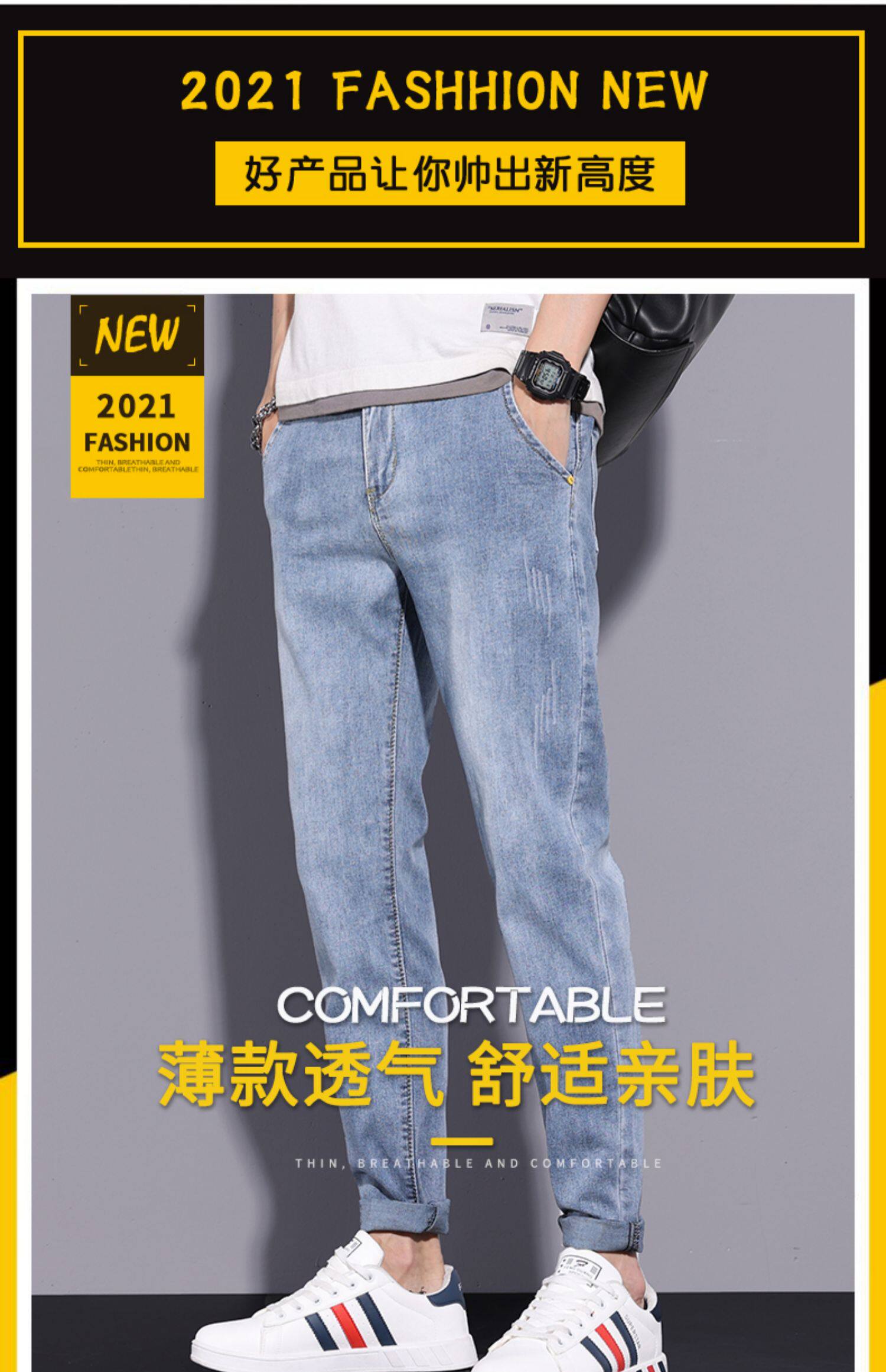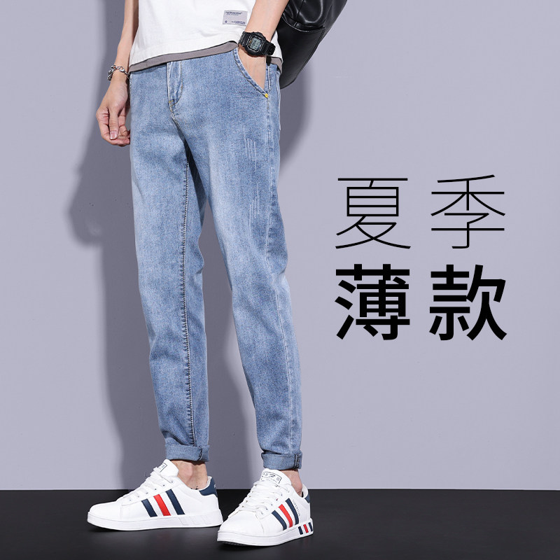 Летние тонкие светлые джинсы, трендовые повседневные брюки для отдыха, свободный прямой крой, коллекция 2022, в корейском стиле