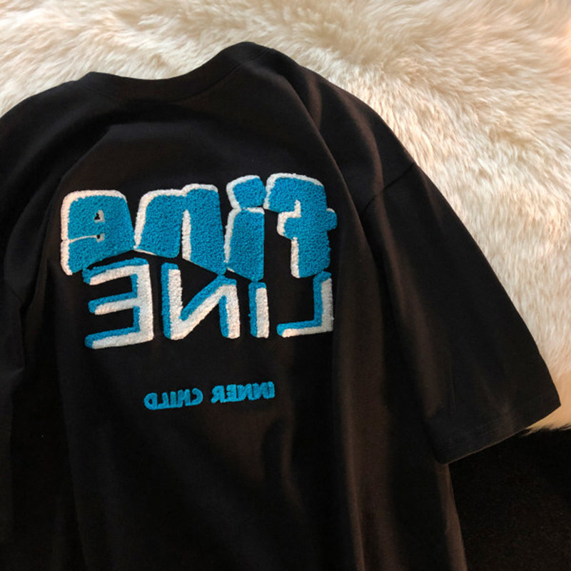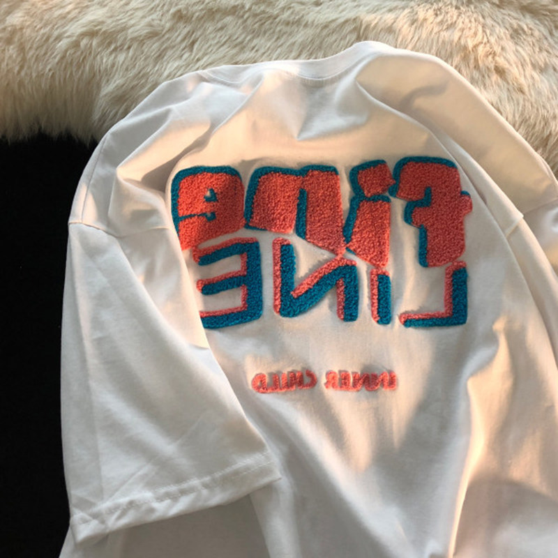 Ретро дизайнерская футболка с коротким рукавом, в американском стиле, короткий рукав, тренд сезона, в корейском стиле, оверсайз