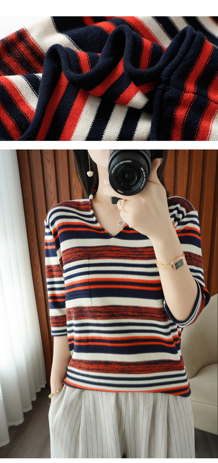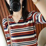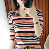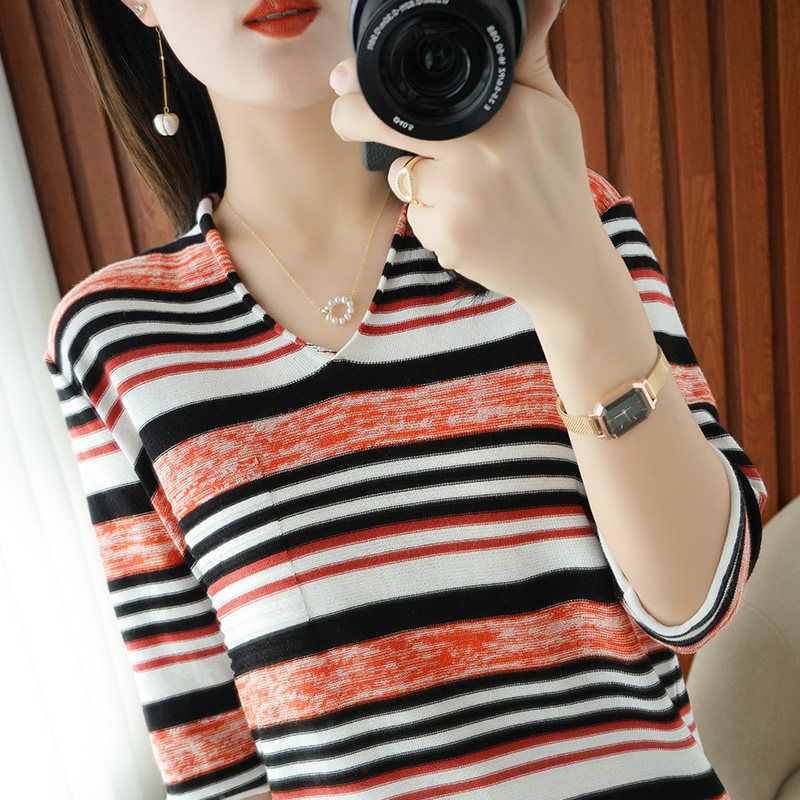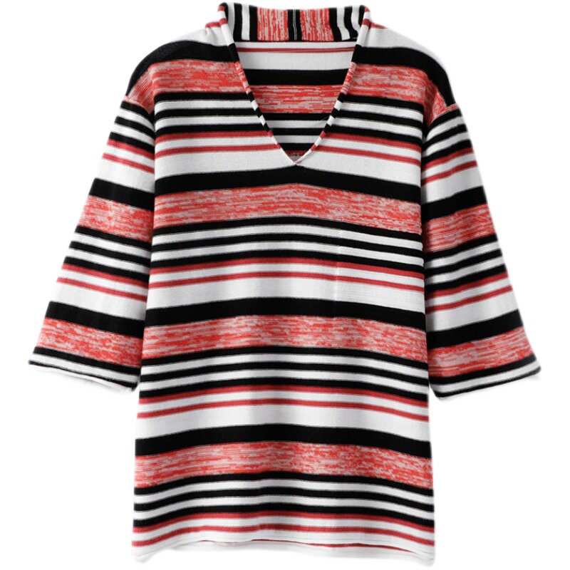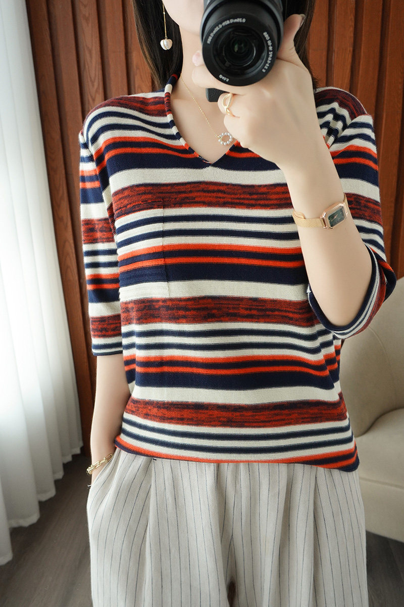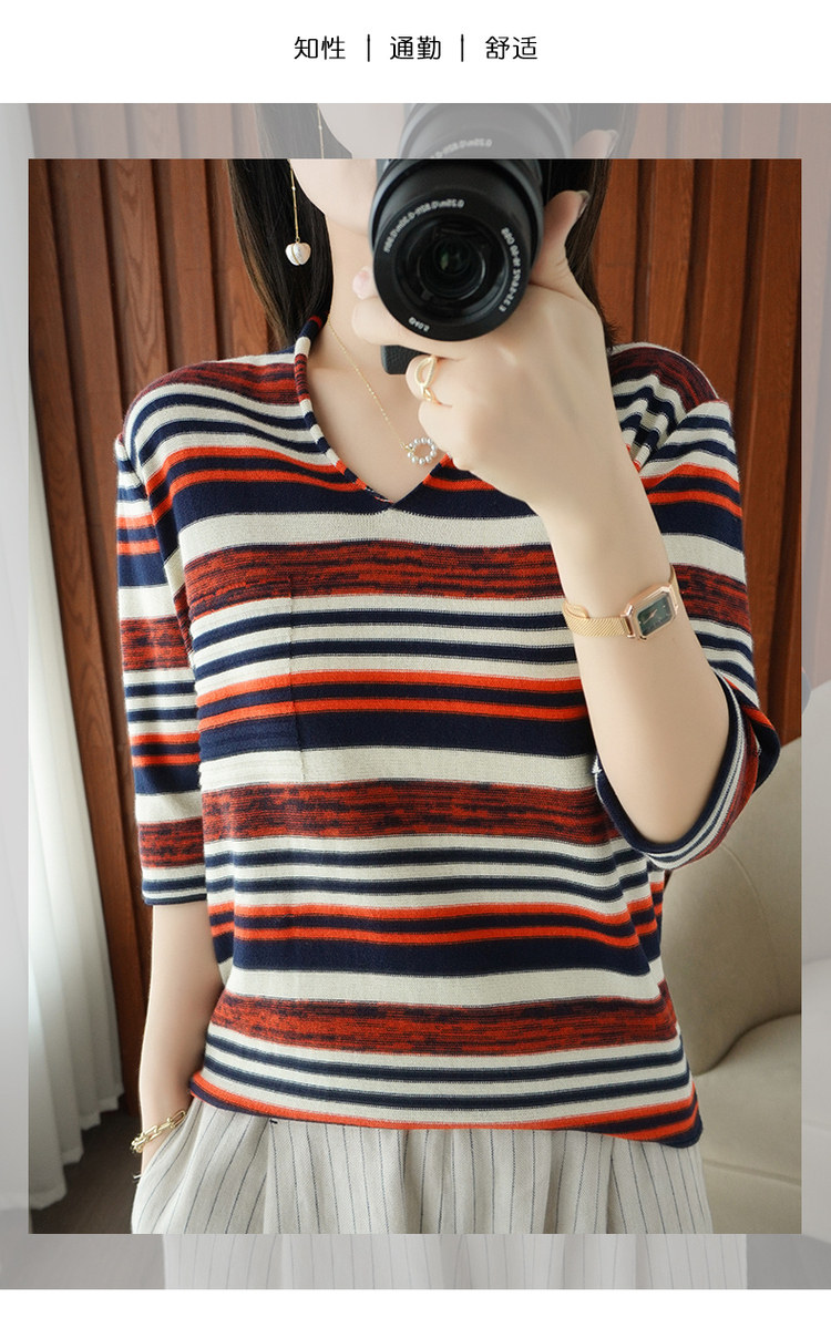 Весенняя трикотажная базовая приятная телу футболка, тренд сезона, из хлопка и льна, V-образный вырез, короткий рукав