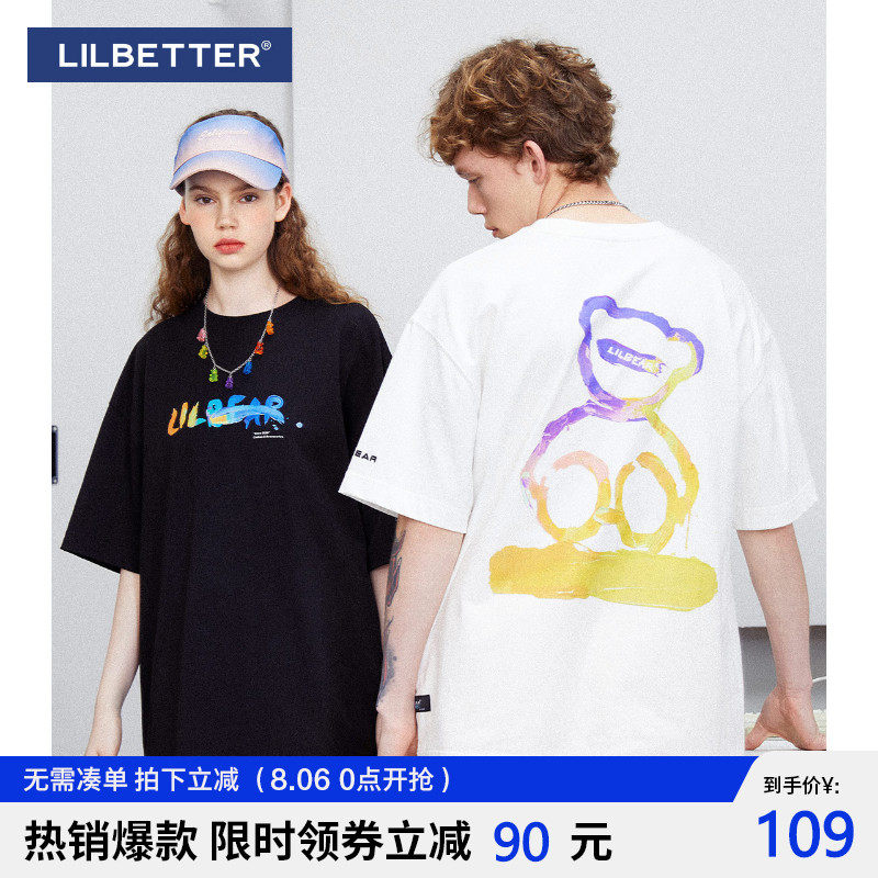 Lilbetter Летняя хлопковая футболка для влюбленных, с медвежатами, коллекция 2021, короткий рукав
