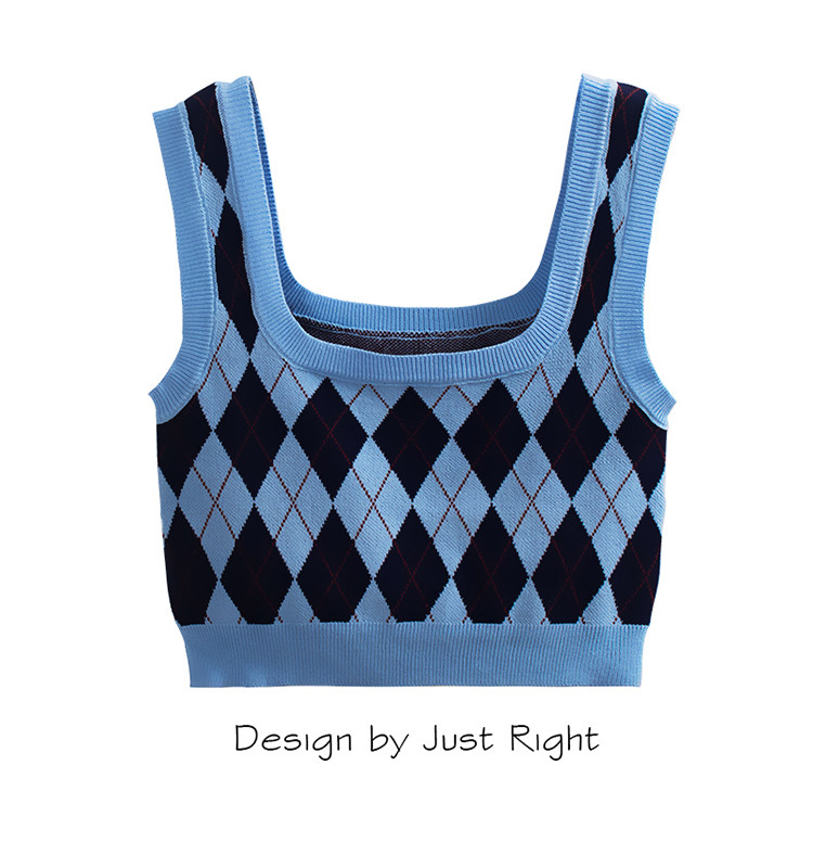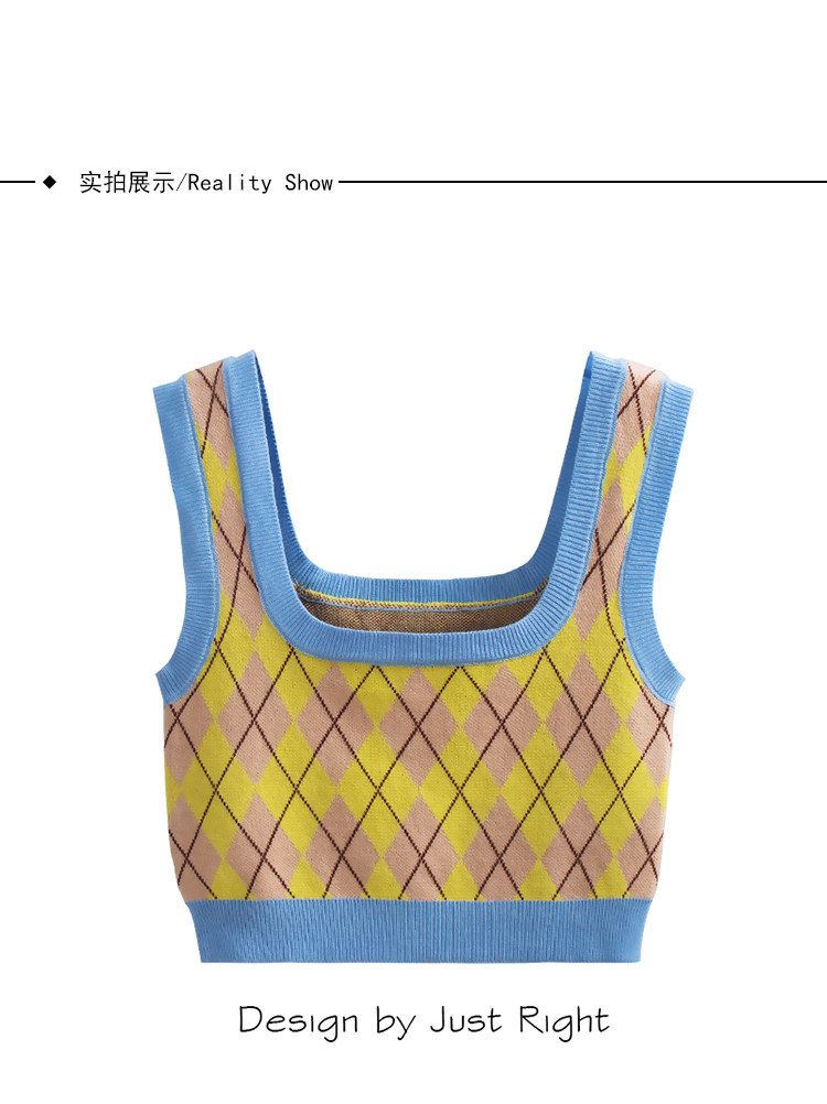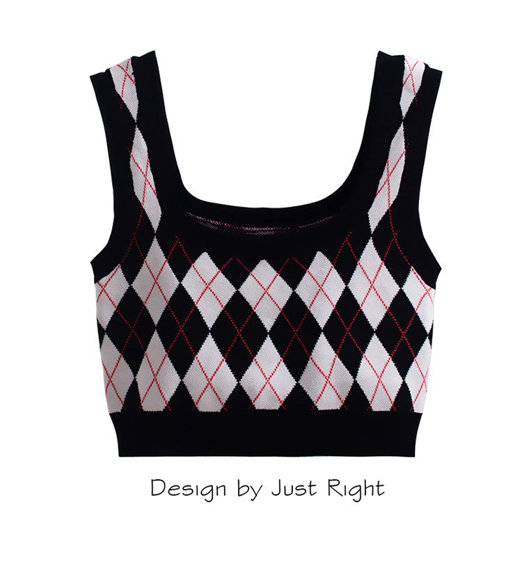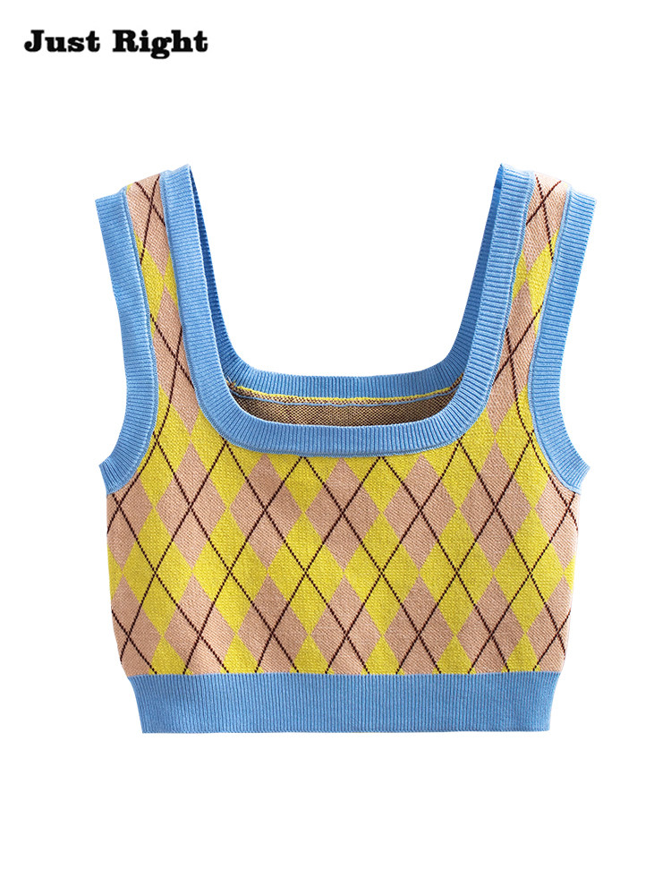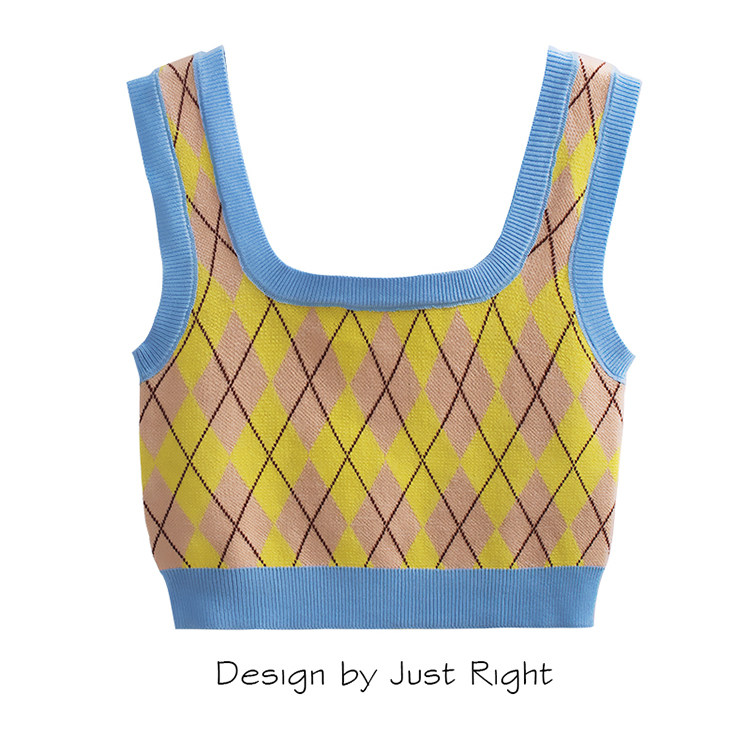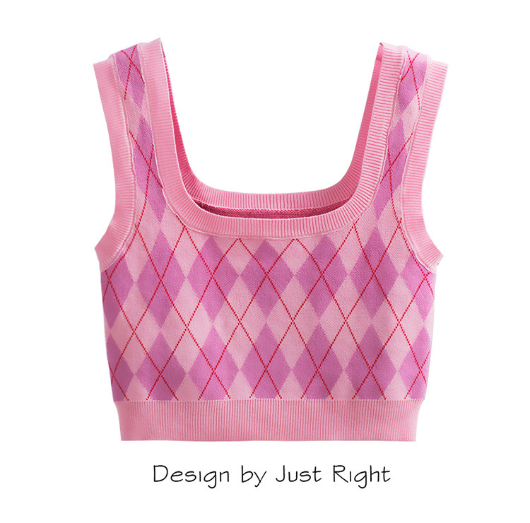 Tide, трикотажный жилет с ромбовидным узором, майка топ, бретели без рукавов, короткое белье для повседневной носки, в американском стиле