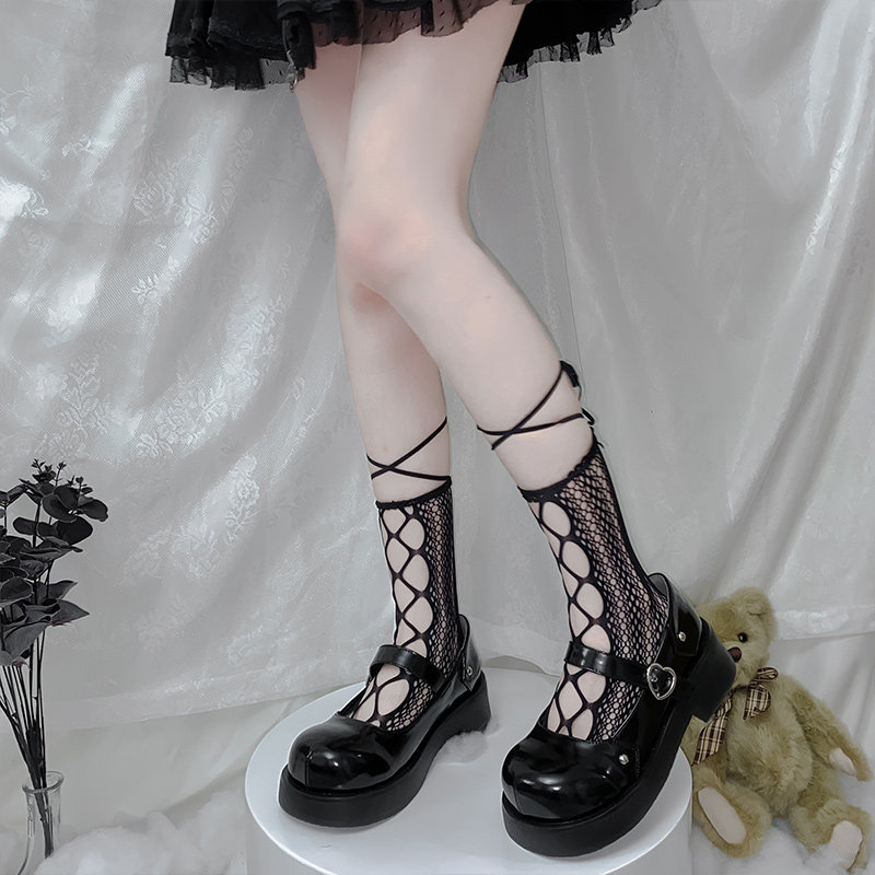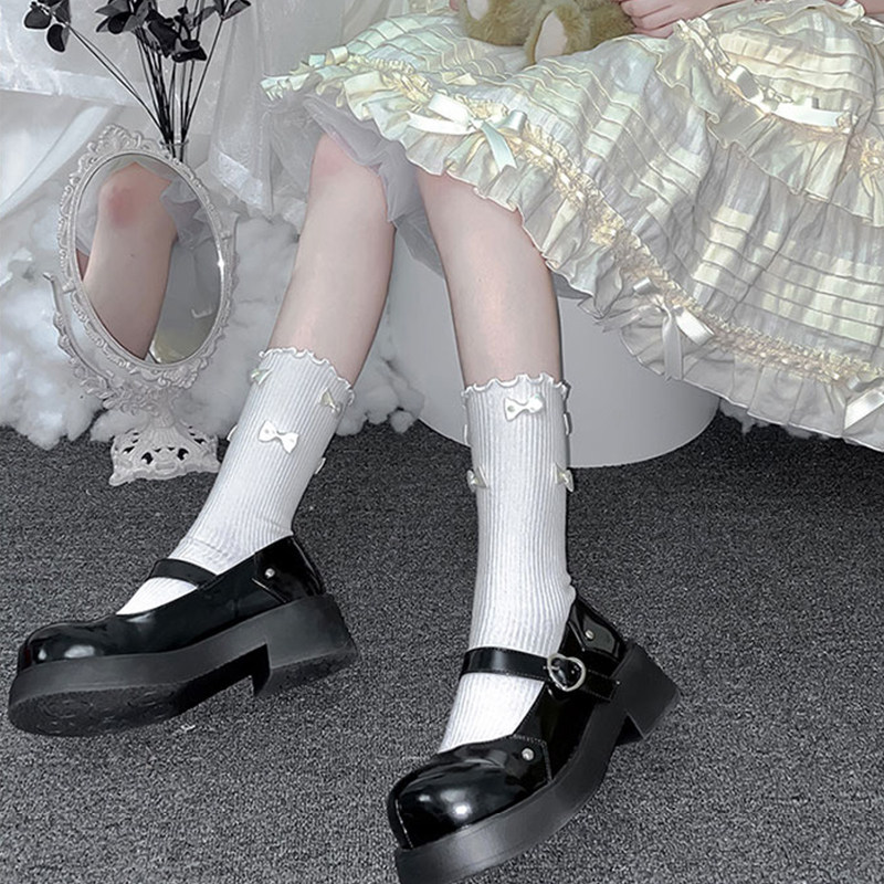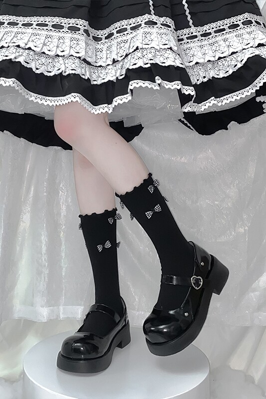 Черные японские милые летние тонкие носки с бантиком, стиль Лолита, средней длины