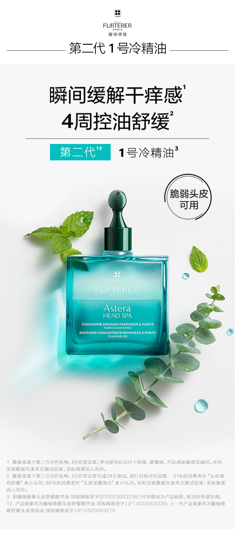 Rene Furterer/馥绿德雅 Успокаивающее эфирное масло для кожи головы, контроль жирного блеска, 50 мл, официальный продукт