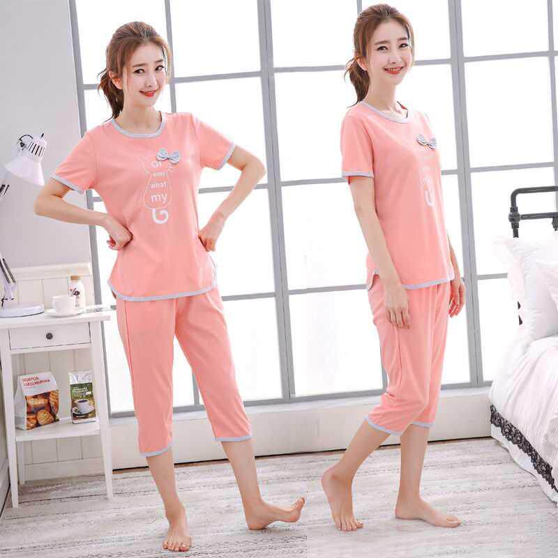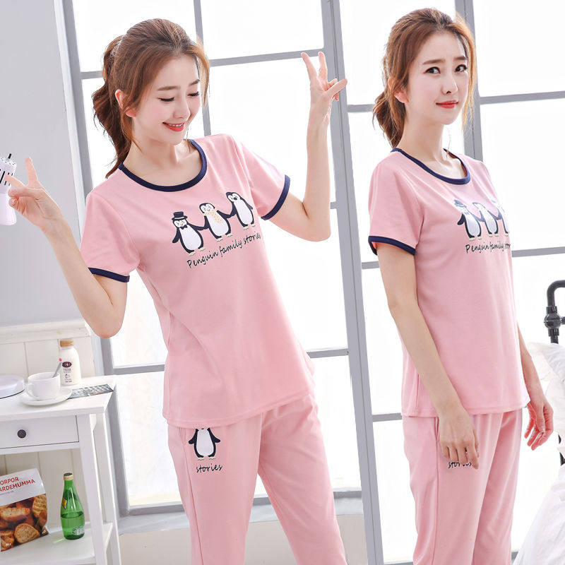 Летняя пижама, штаны, нарукавники, свежий летний костюм для школьников и студентов, тонкий комплект, в корейском стиле, короткий рукав