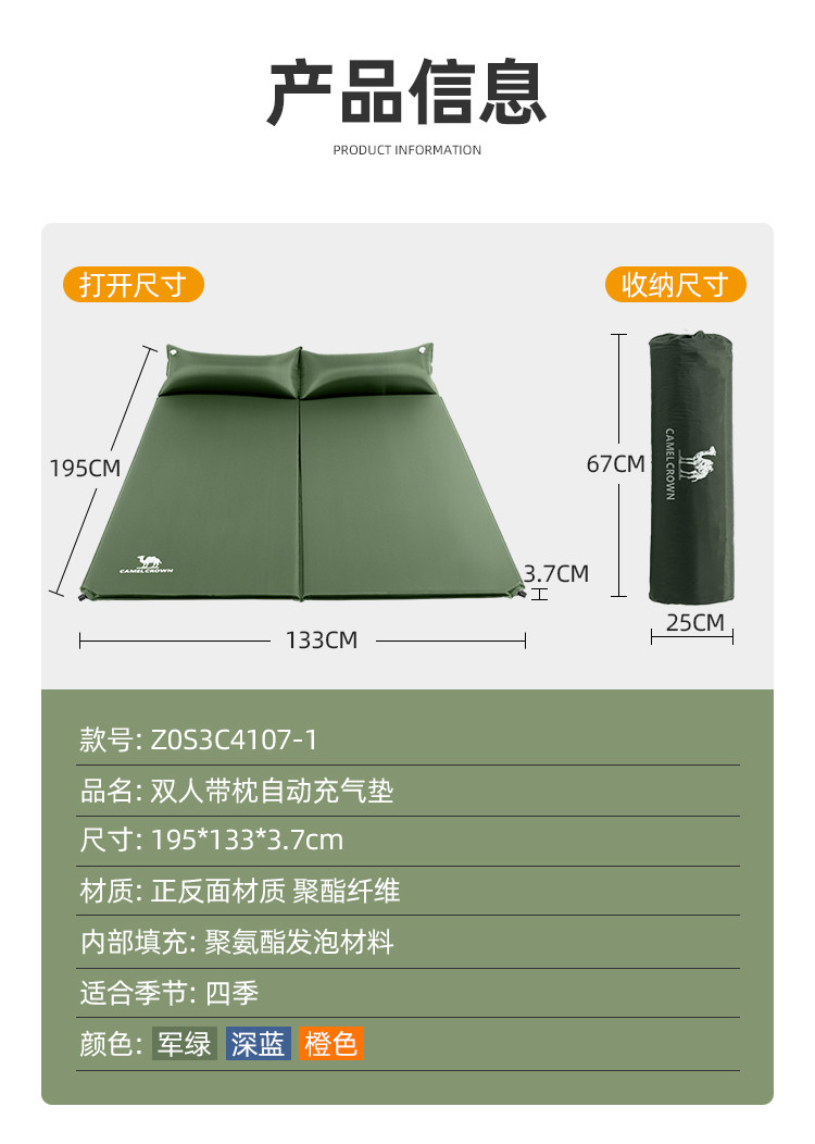 Дорожный надувной кушон для двоих, подушка, матрас для кемпинга, автоматический ковер, надувная палатка