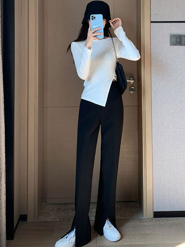 Костюм, тонкие брендовые штаны, коллекция 2023, высокая талия, свободный прямой крой