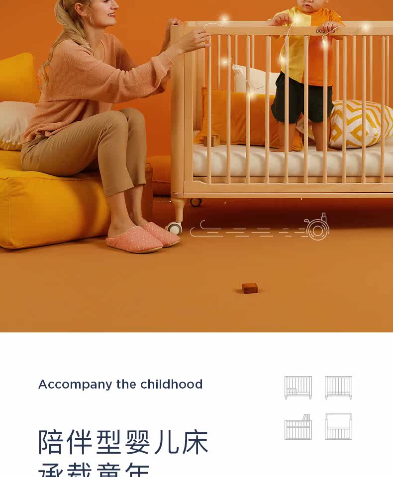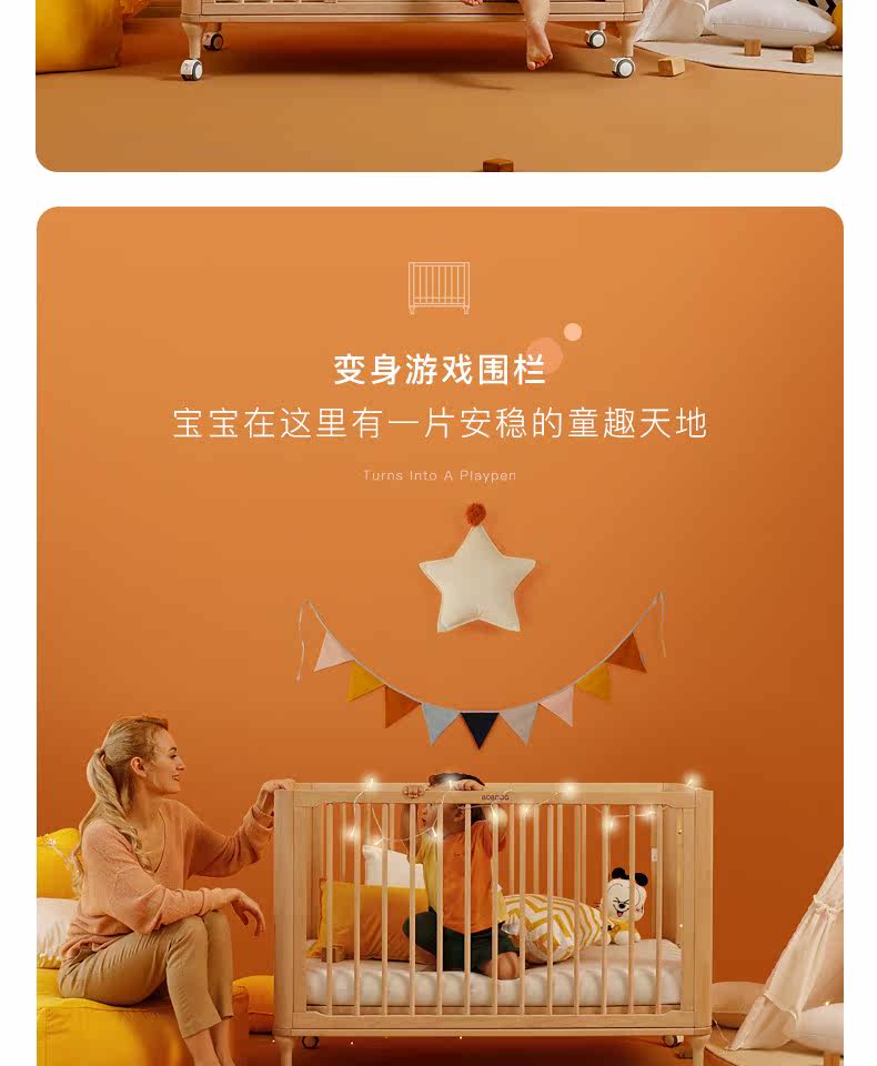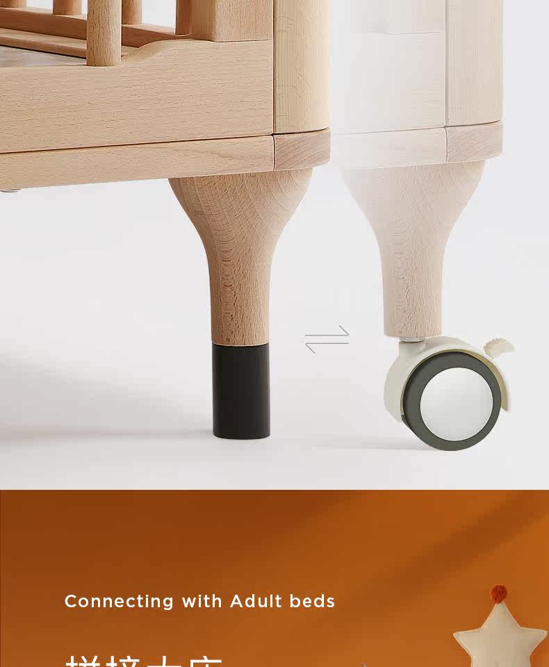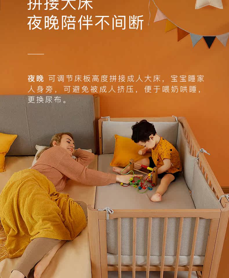 Универсальная детская кроватка для приставной кровати из натурального дерева для новорожденных