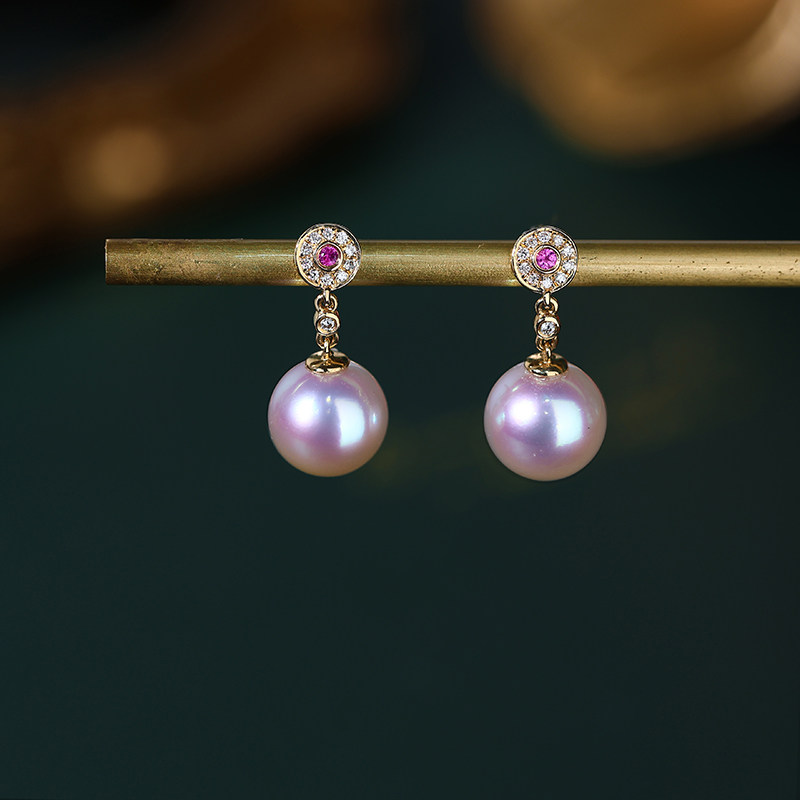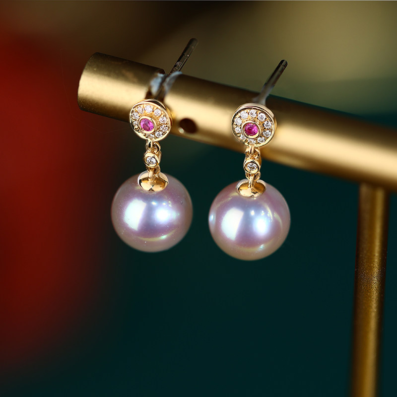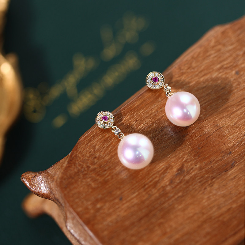 慕皇 Ювелирное украшение, натуральная инкрустация камня из жемчуга, серьги, золото 750 пробы, 8mm