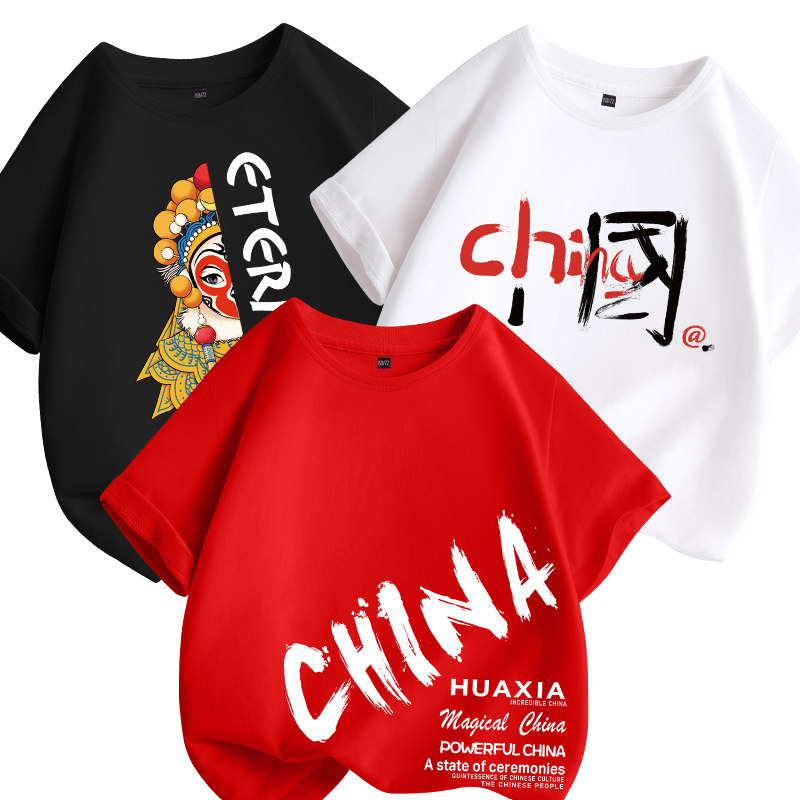 Летняя футболка с коротким рукавом для мальчиков, детская летняя одежда, красный костюм, китайский стиль