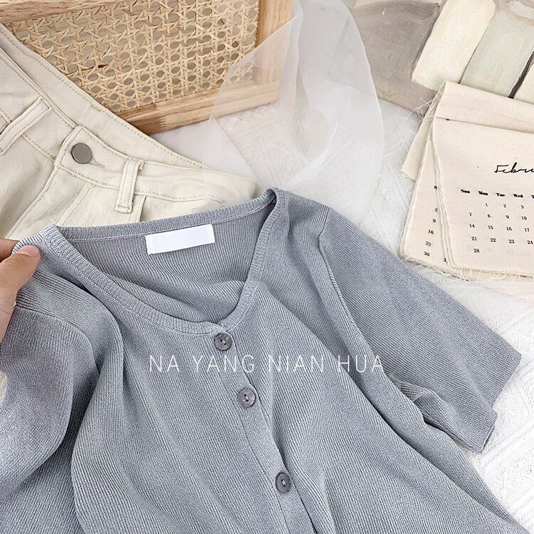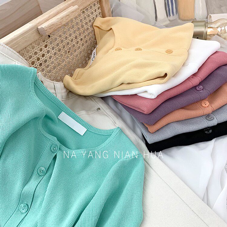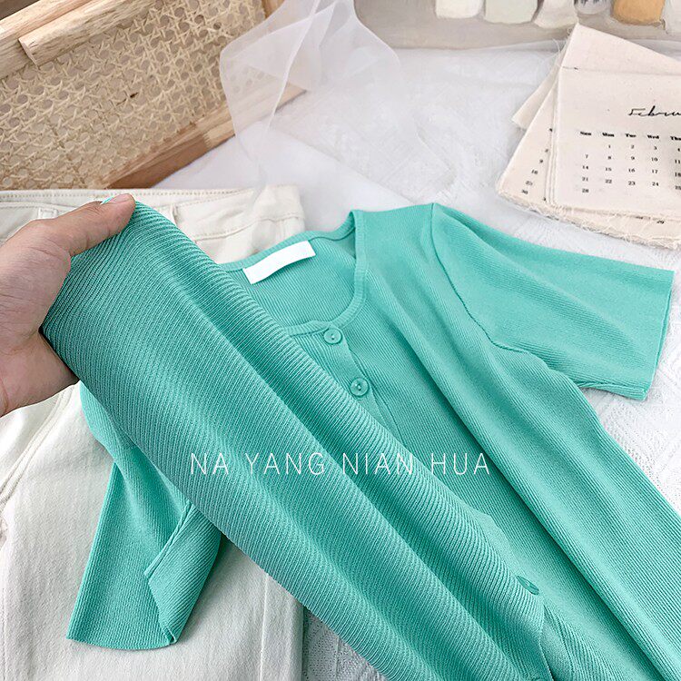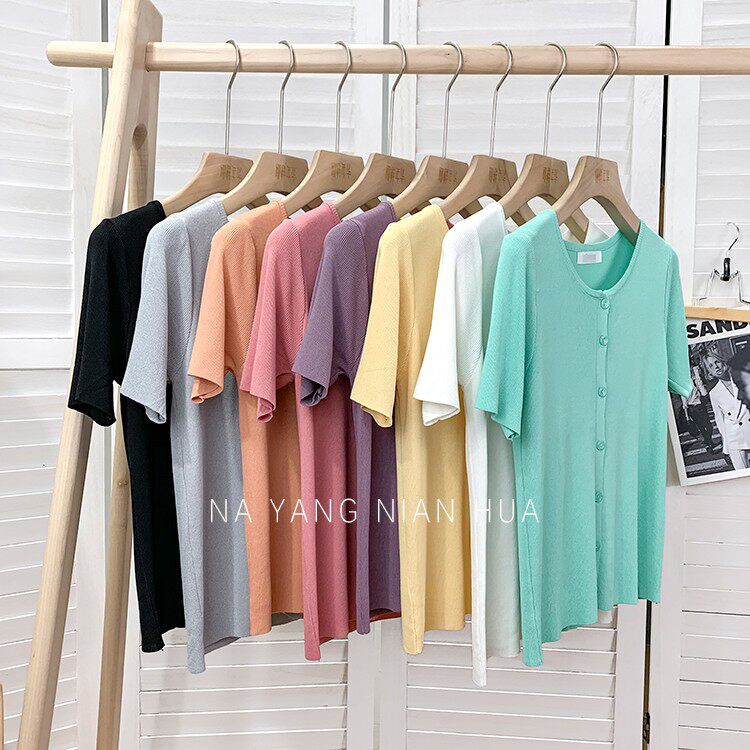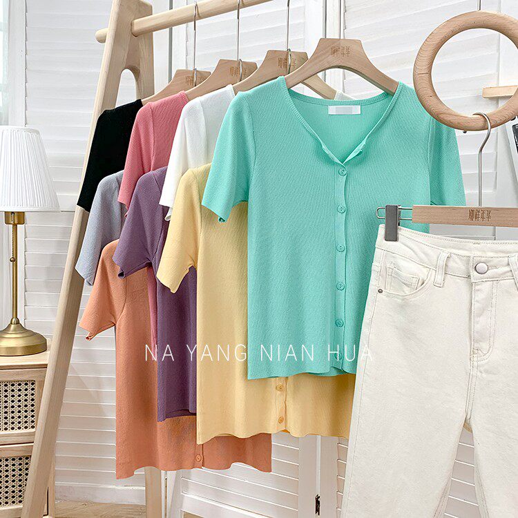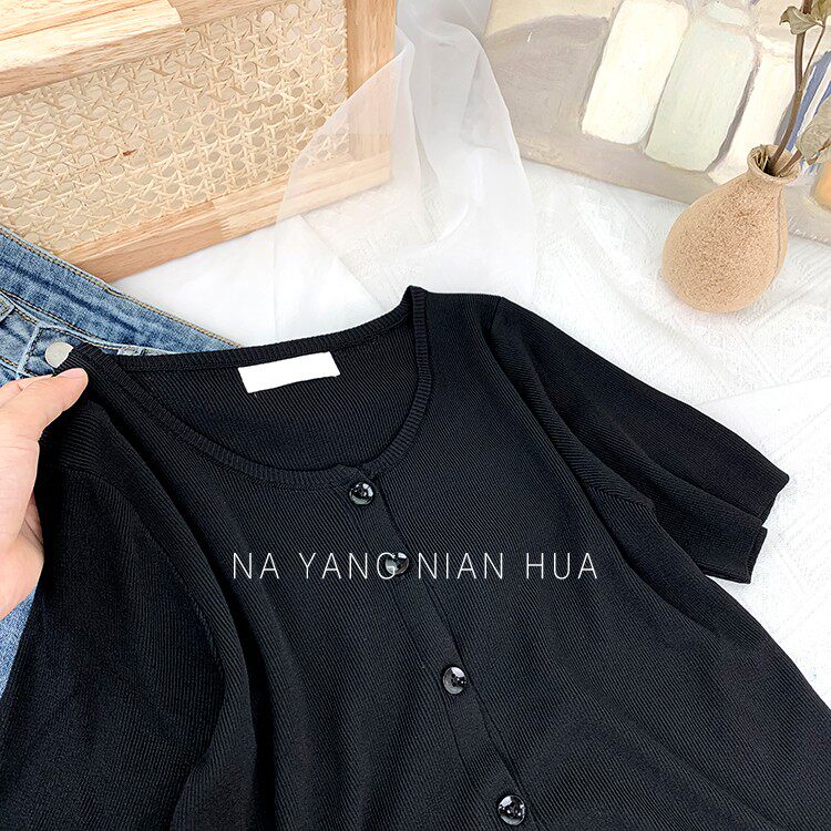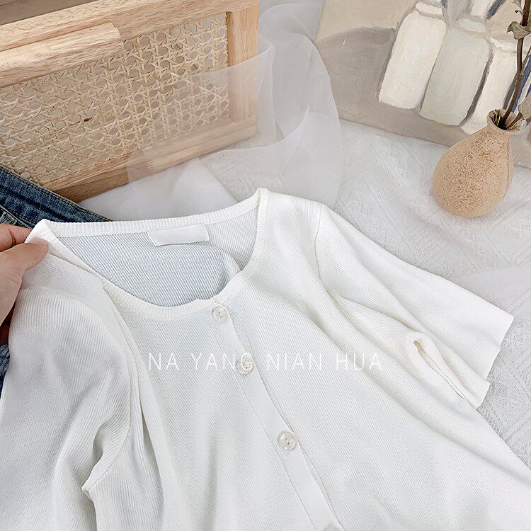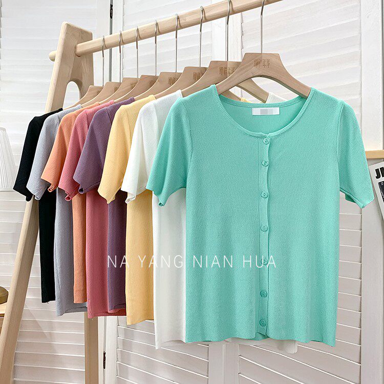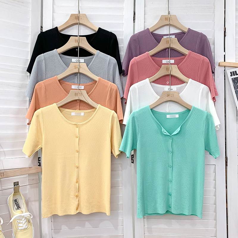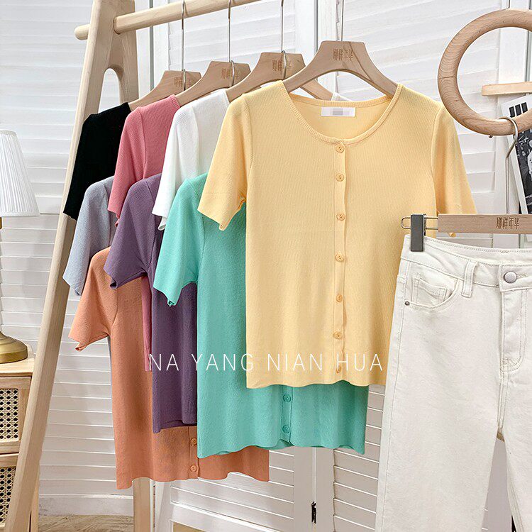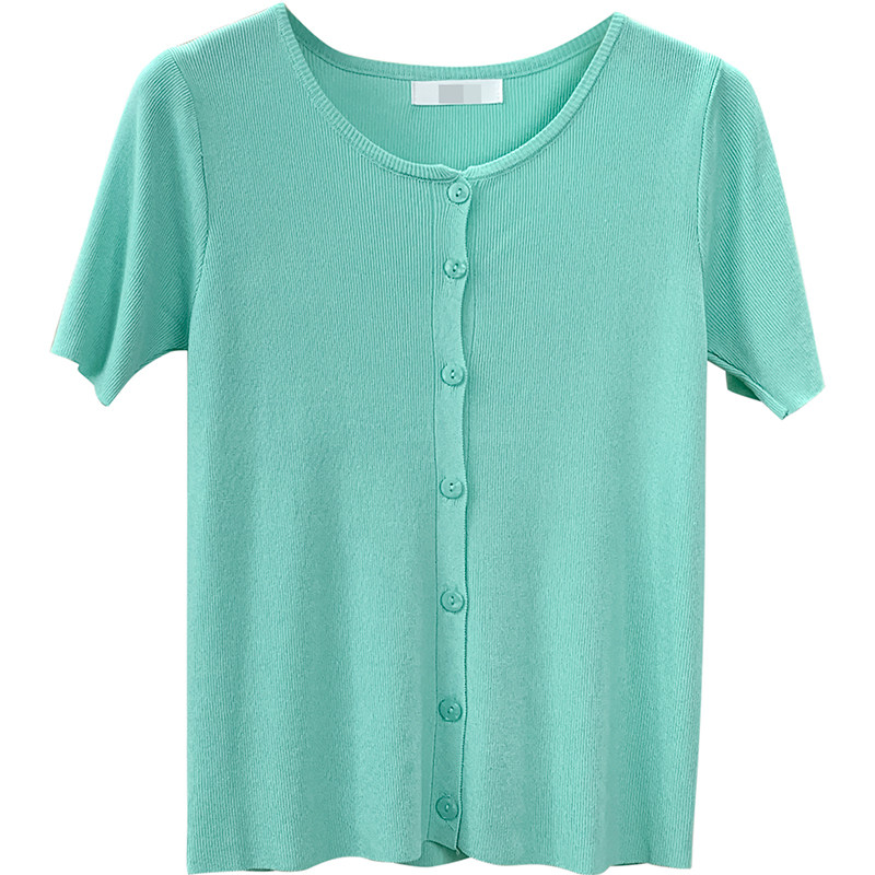 Шелковый трикотажный дизайнерский кардиган с круглым воротником, футболка, в корейском стиле, по фигуре, тренд сезона, в западном стиле