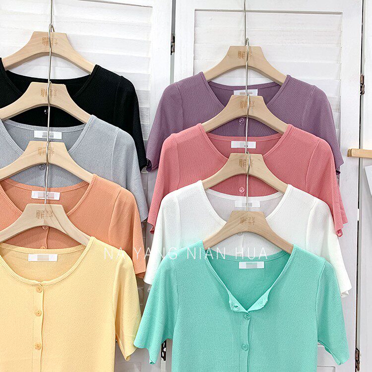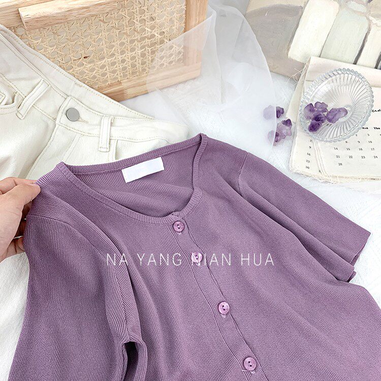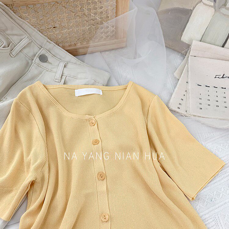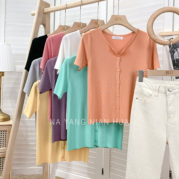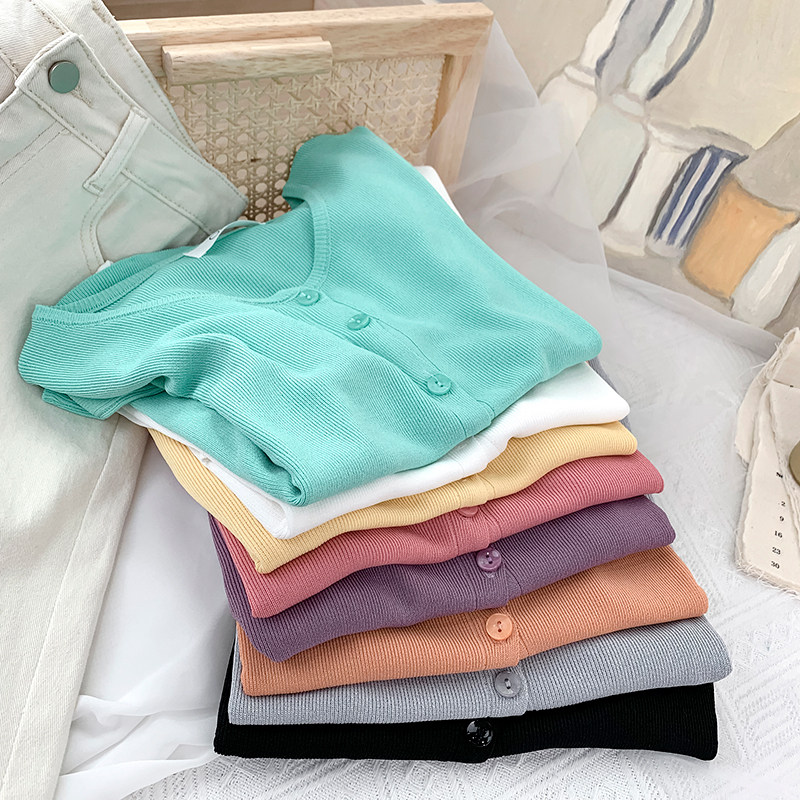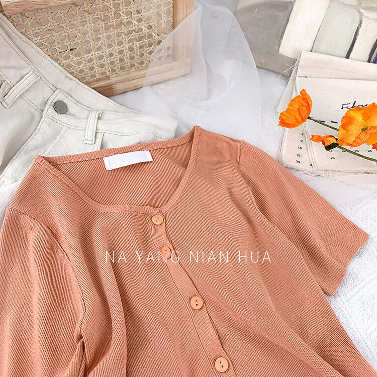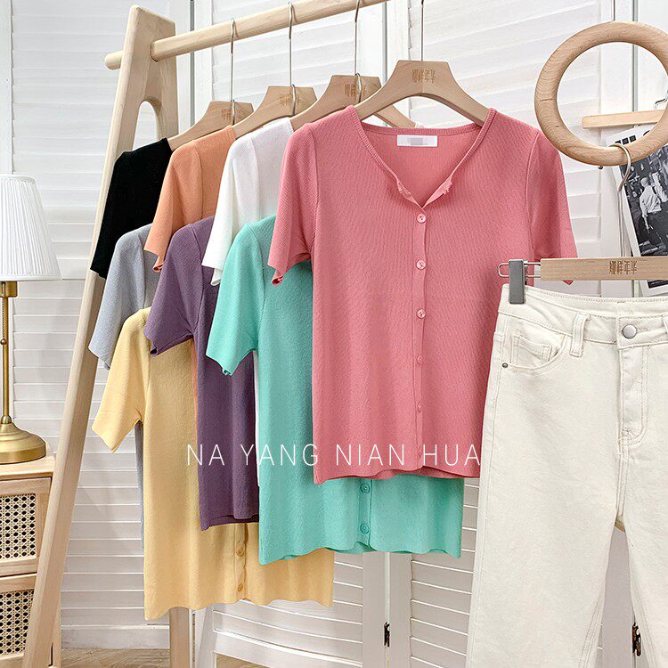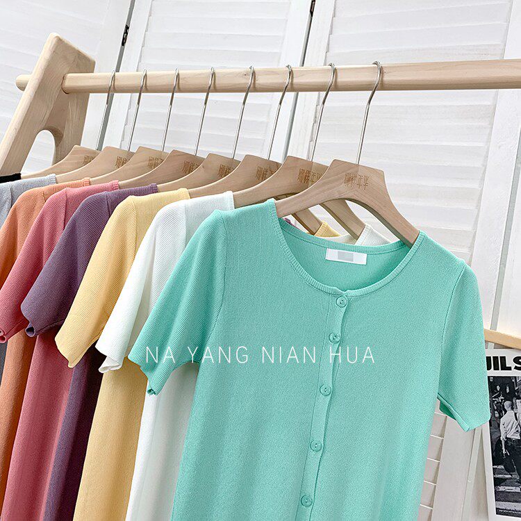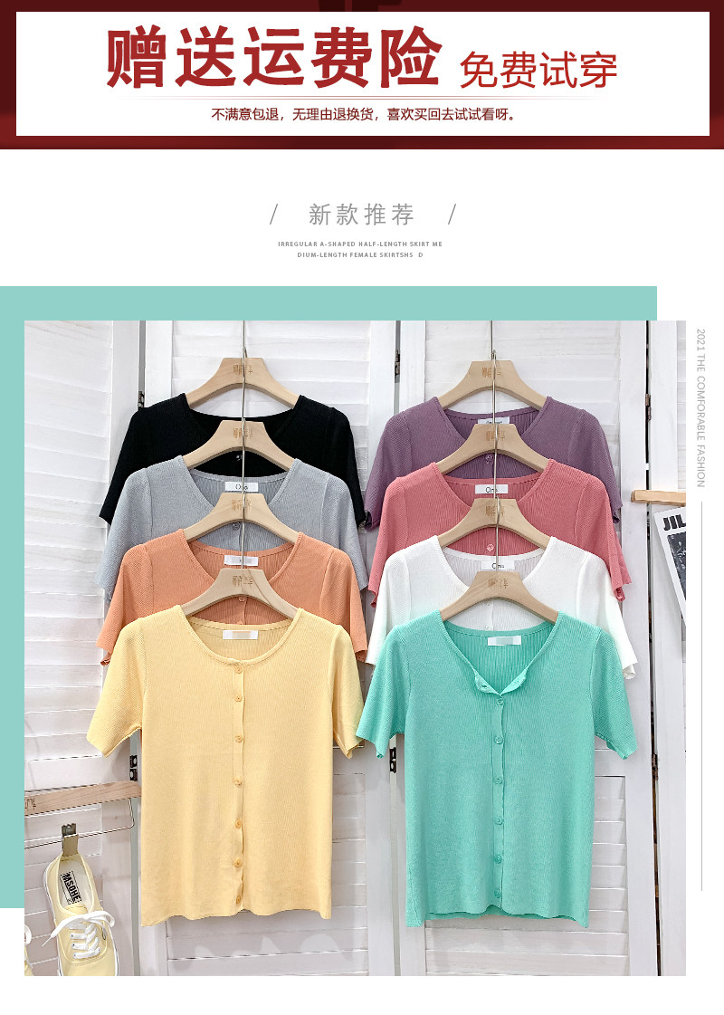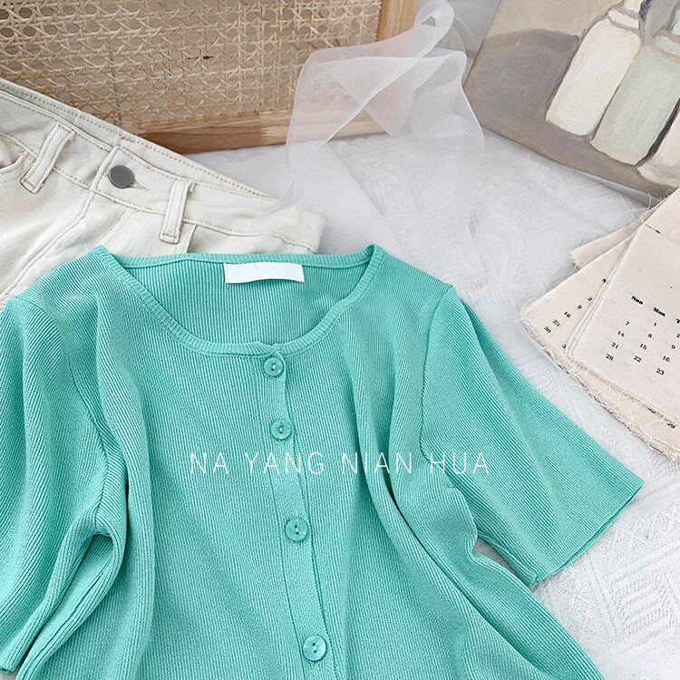Шелковый трикотажный дизайнерский кардиган с круглым воротником, футболка, в корейском стиле, по фигуре, тренд сезона, в западном стиле
