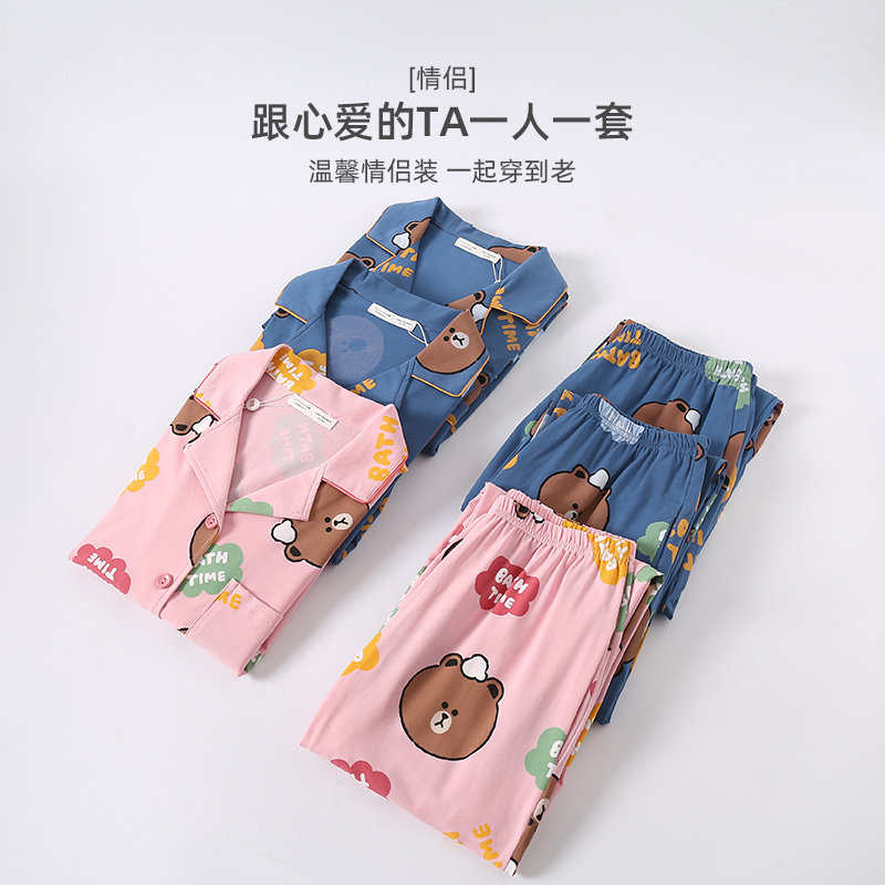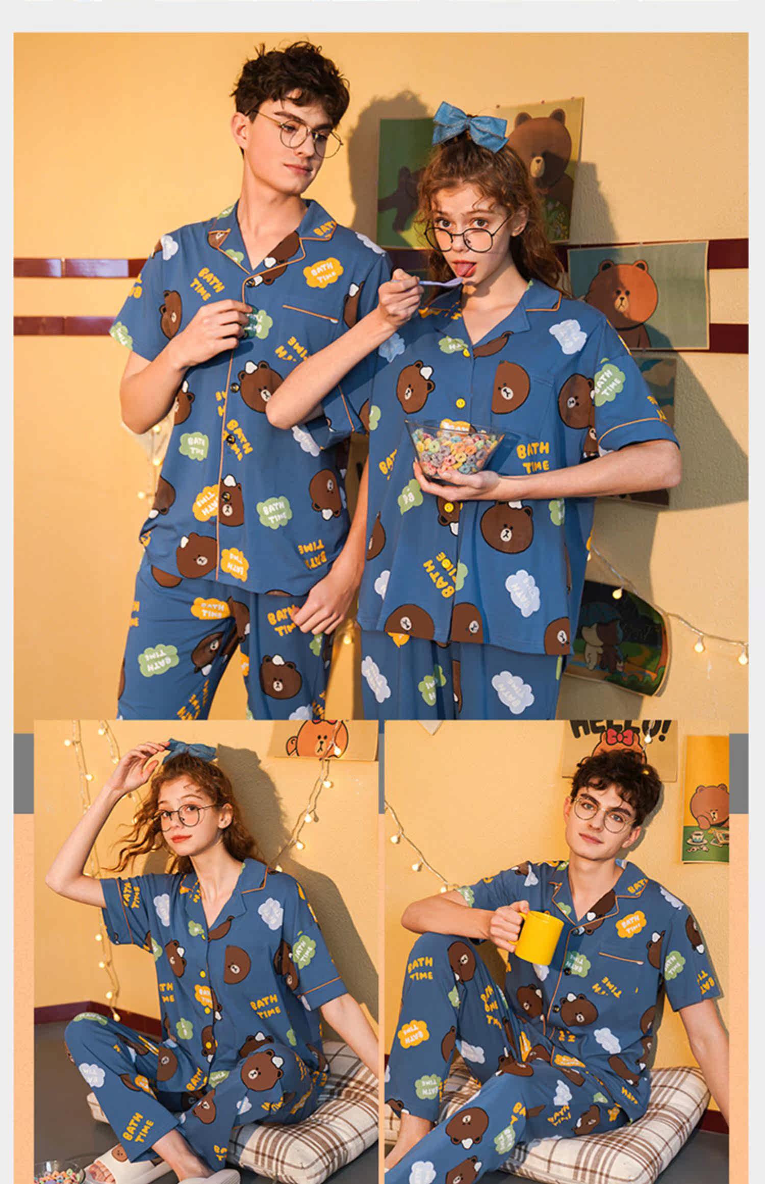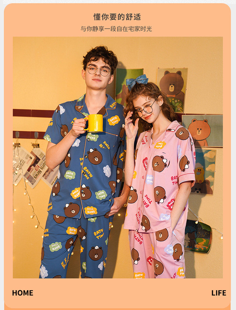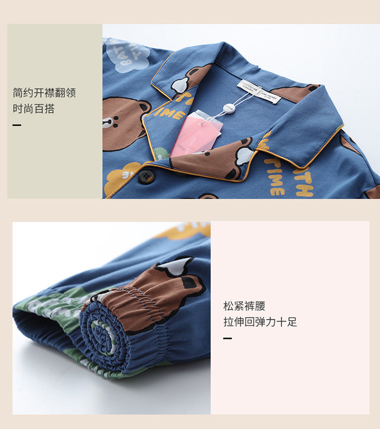 芬腾 Летняя хлопковая пижама, тонкие мультяшные штаны, мужской комплект, для влюбленных, короткий рукав