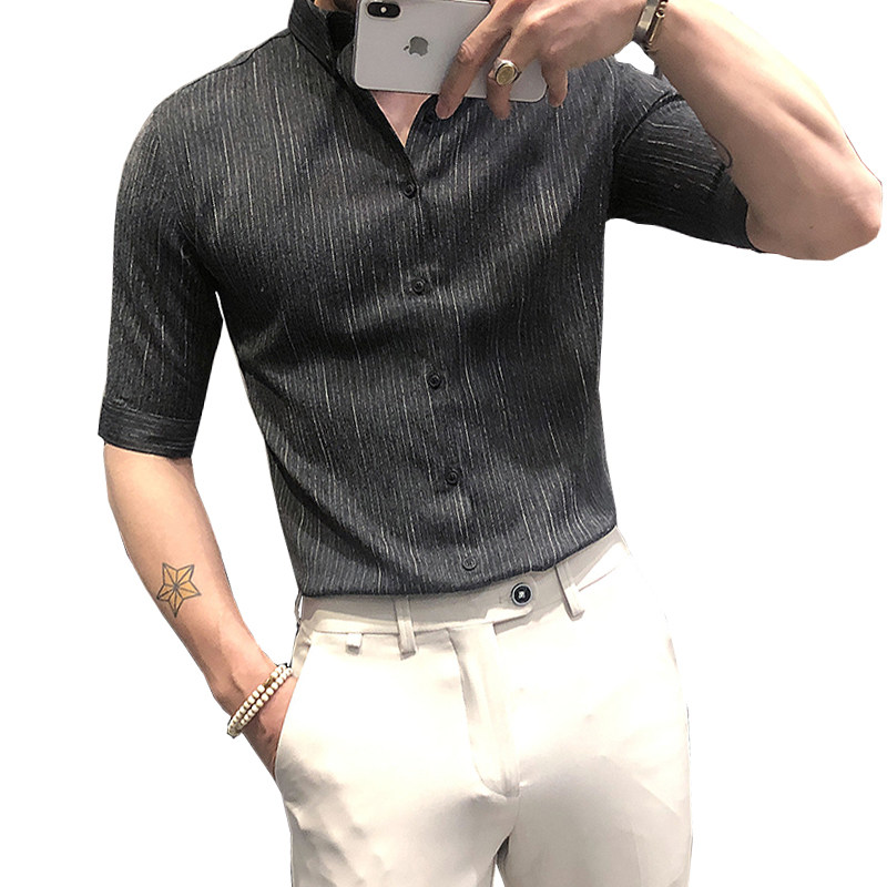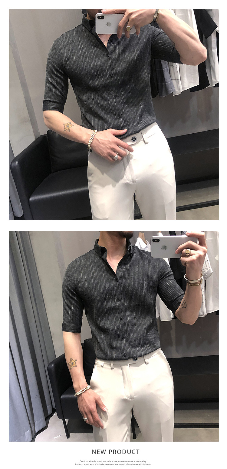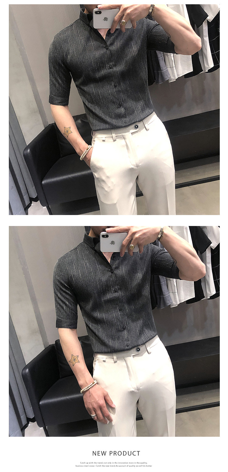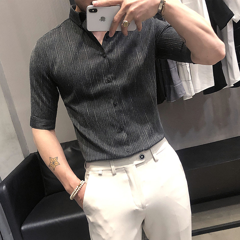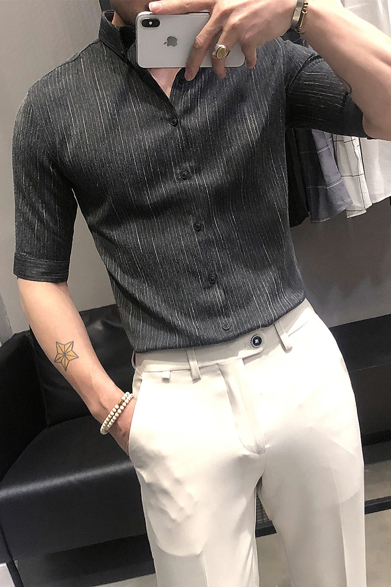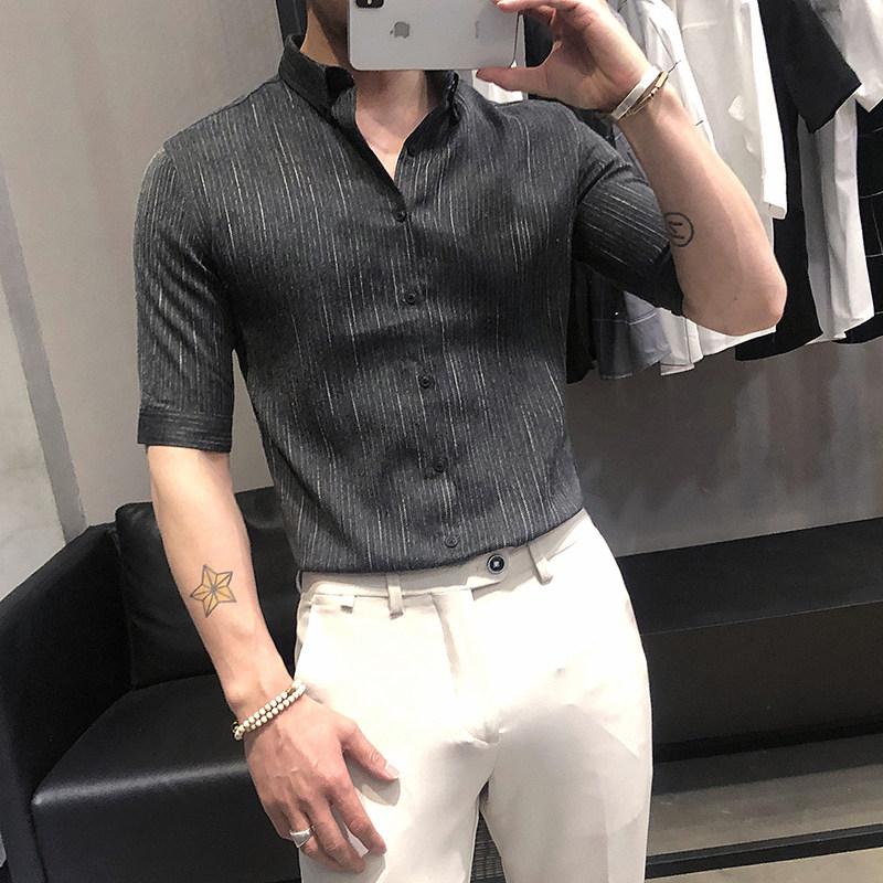 Летняя рубашка, мужской тонкий приталенный небольшой дизайнерский ростомер, изысканный стиль, тренд сезона