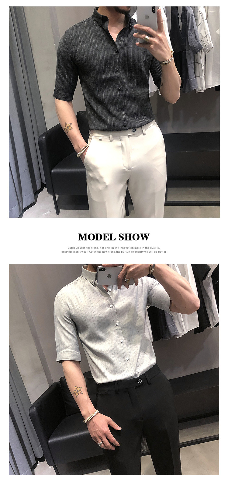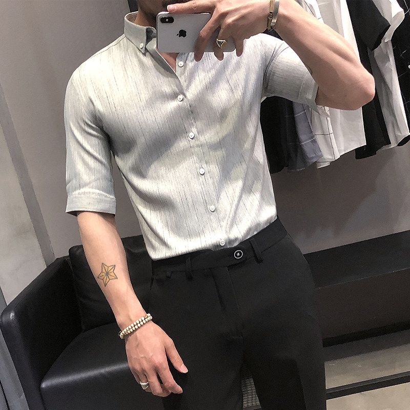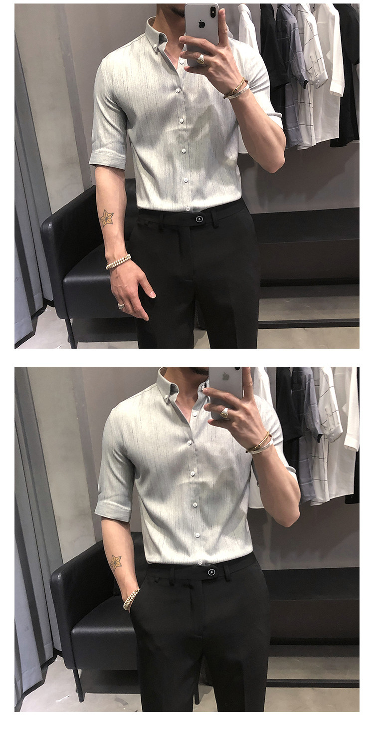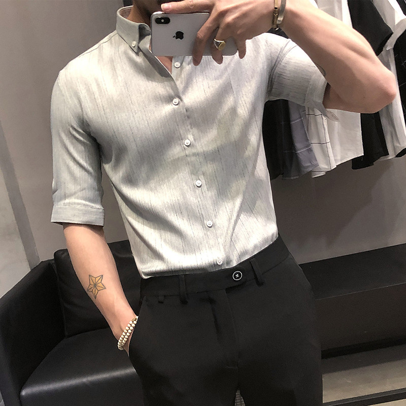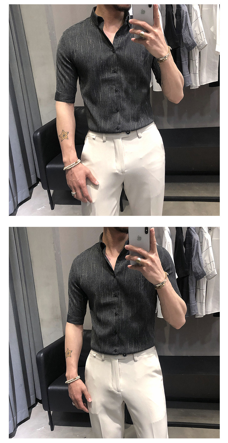 Летняя рубашка, мужской тонкий приталенный небольшой дизайнерский ростомер, изысканный стиль, тренд сезона