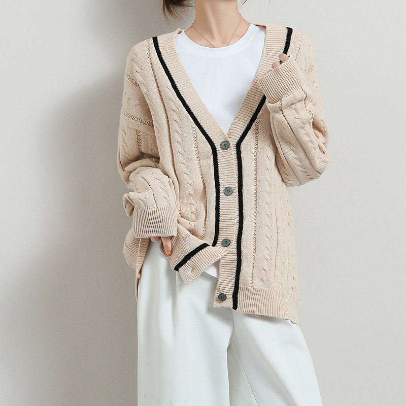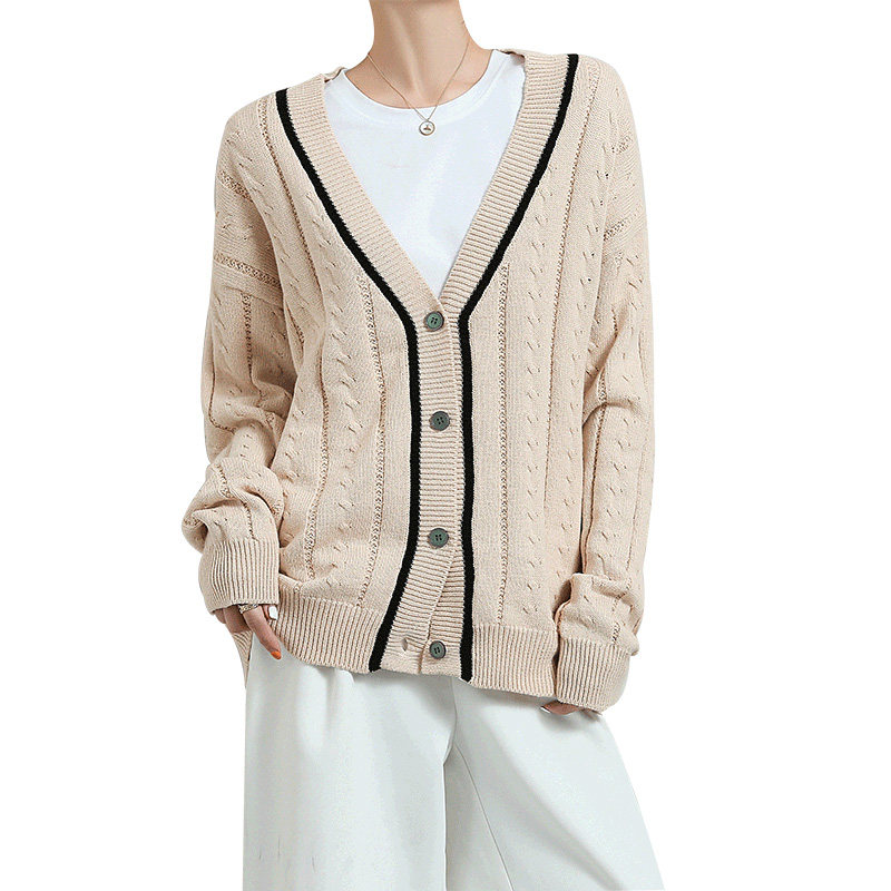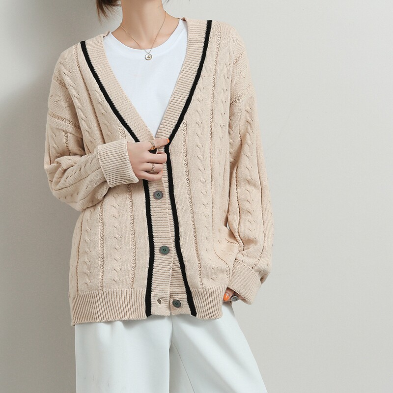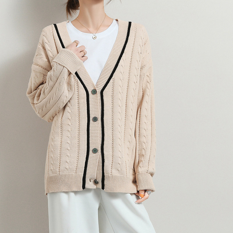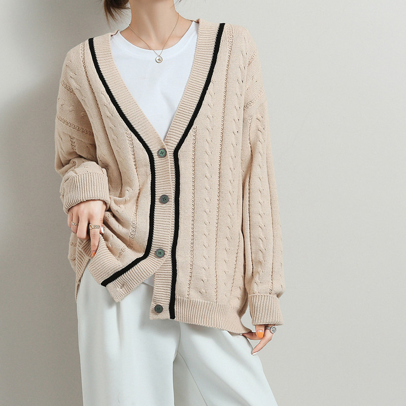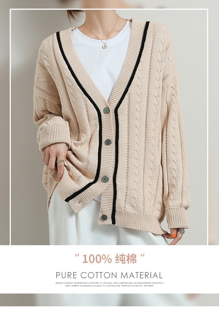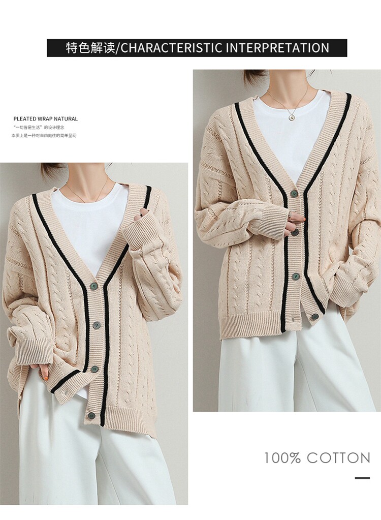 Хлопковый короткий осенний кардиган, 100% хлопок, оверсайз, в корейском стиле
