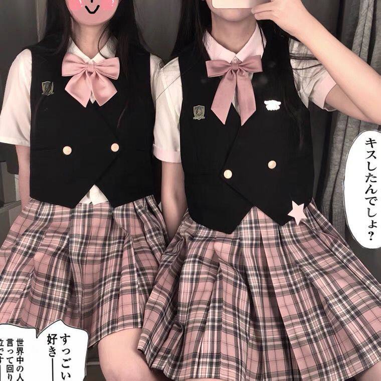 Жилет на день Святого Валентина, студенческая юбка в складку, галстук-бабочка, (в наличии на складе)