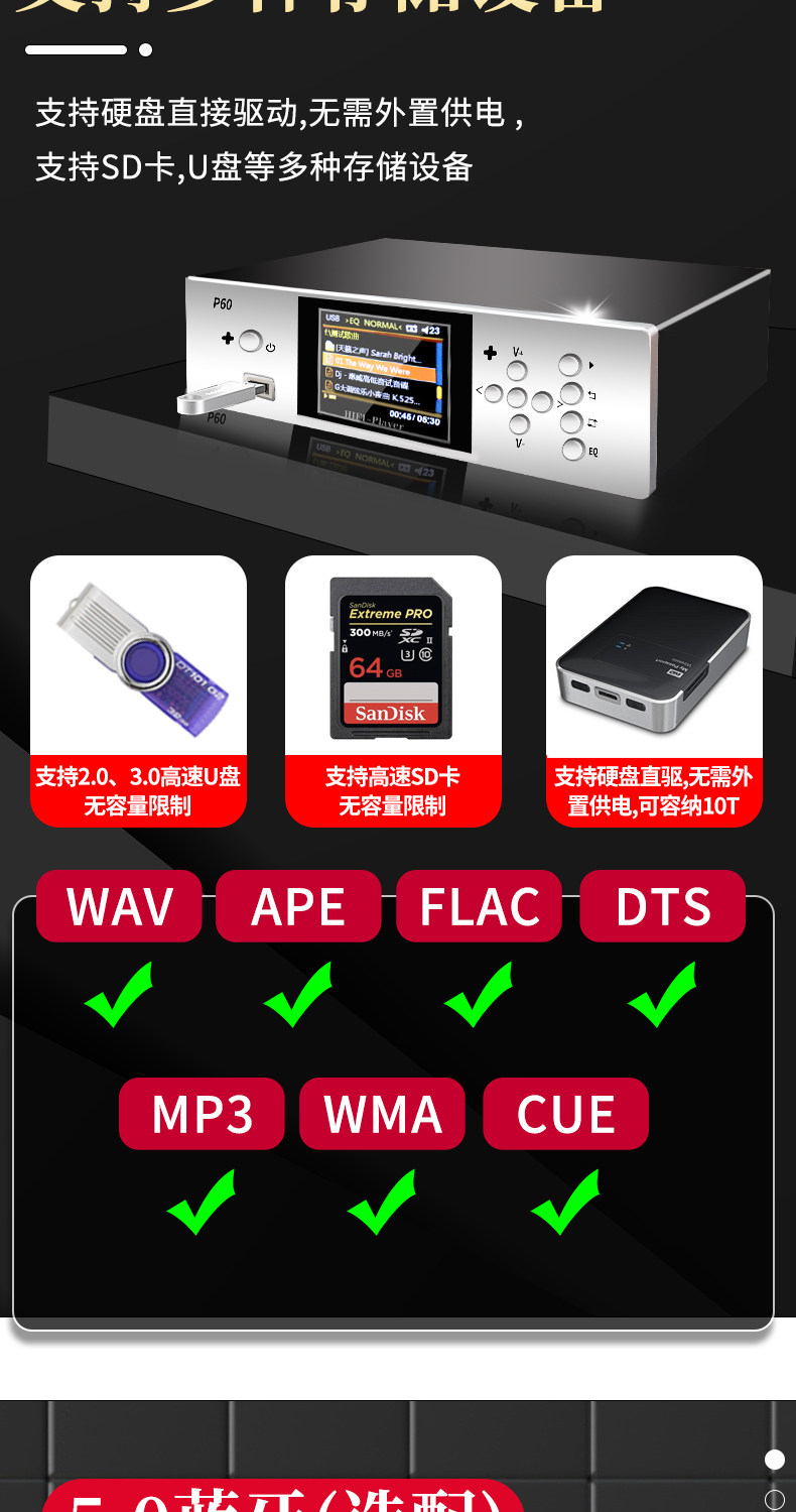 Несоответствующая мать с игроком Dual ES9038Q2M жесткая диск SD Card U Disk Bluetooth 5.1 Digital Player Blue Bird P30