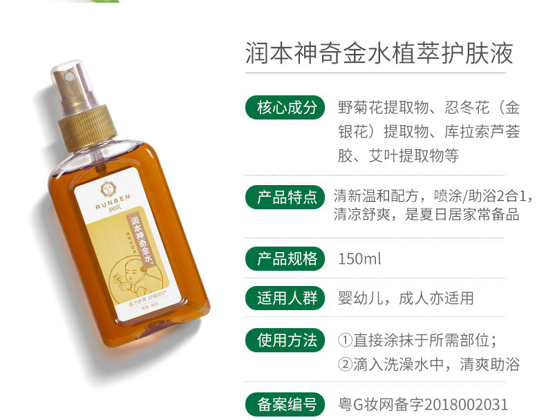 润本 Детская туалетная вода, освежающая золотая вода для раннего возраста