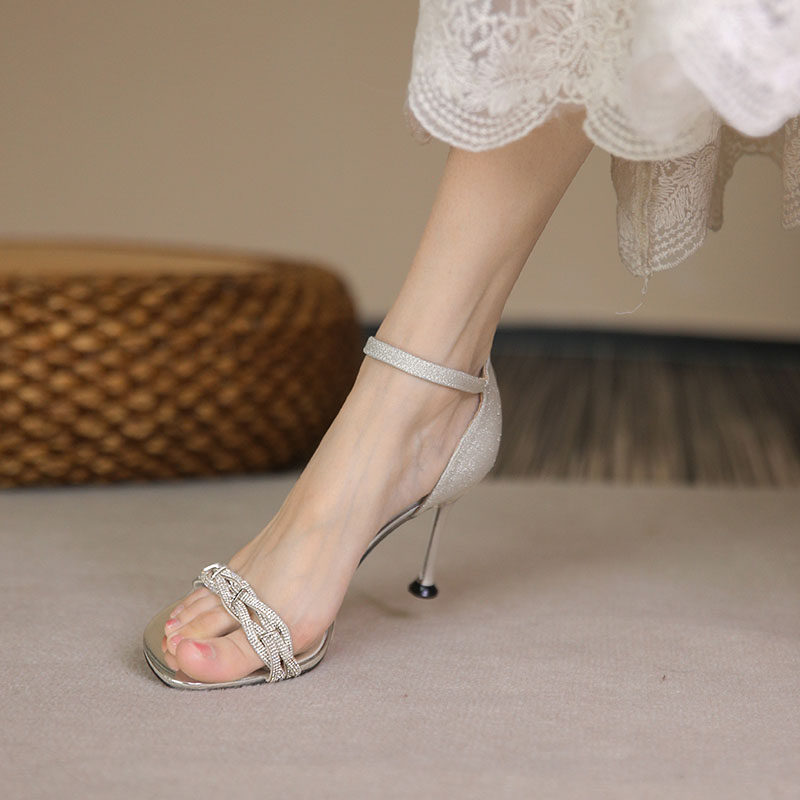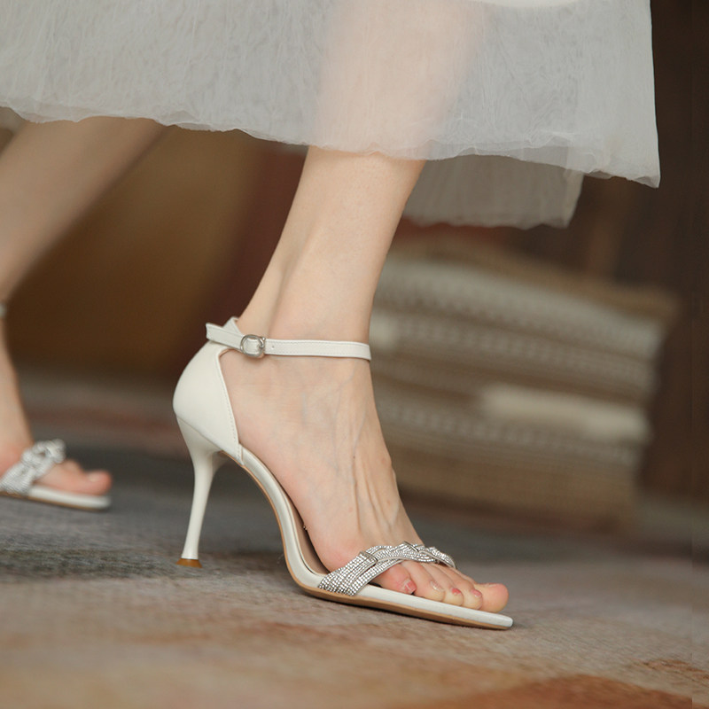 Белые летние босоножки, туфли на высоком каблуке с ремешком, 2022, французский стиль