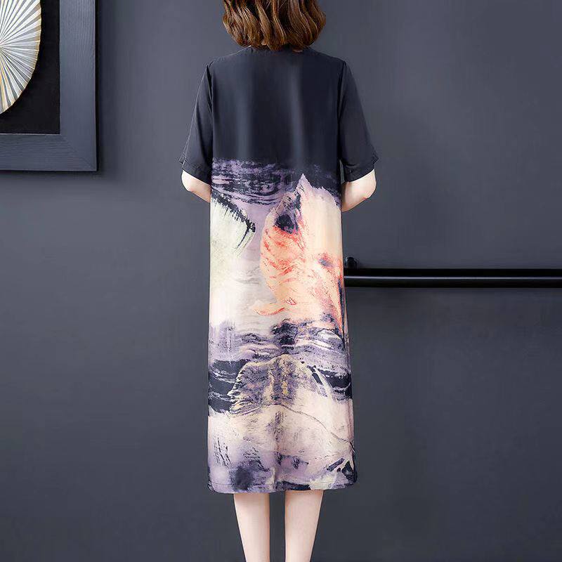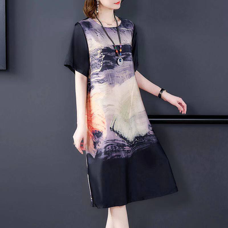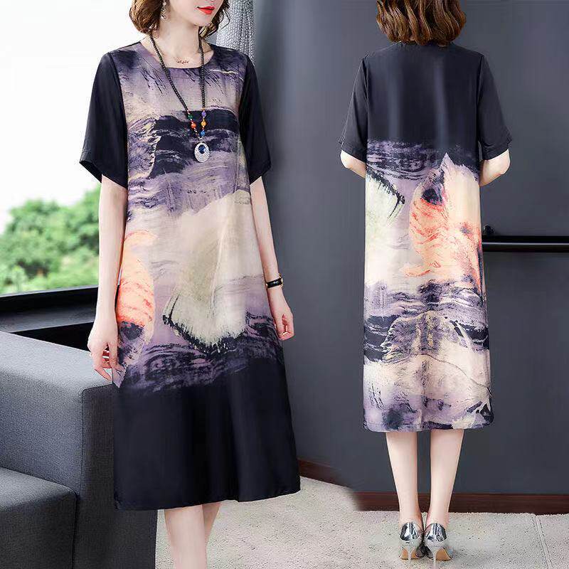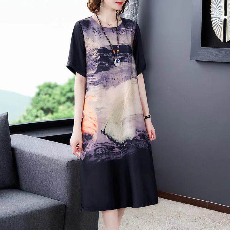 Шелковое этническое платье, летняя шелковая юбка, большого размера (2021), большой размер, свободный крой, этнический стиль