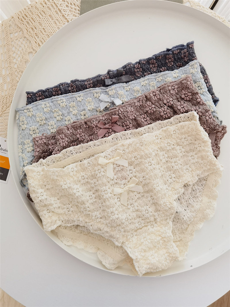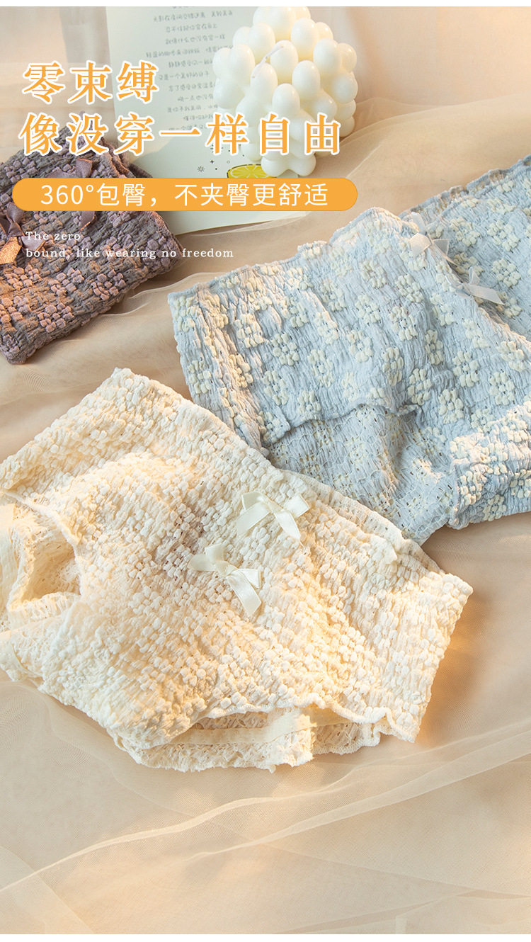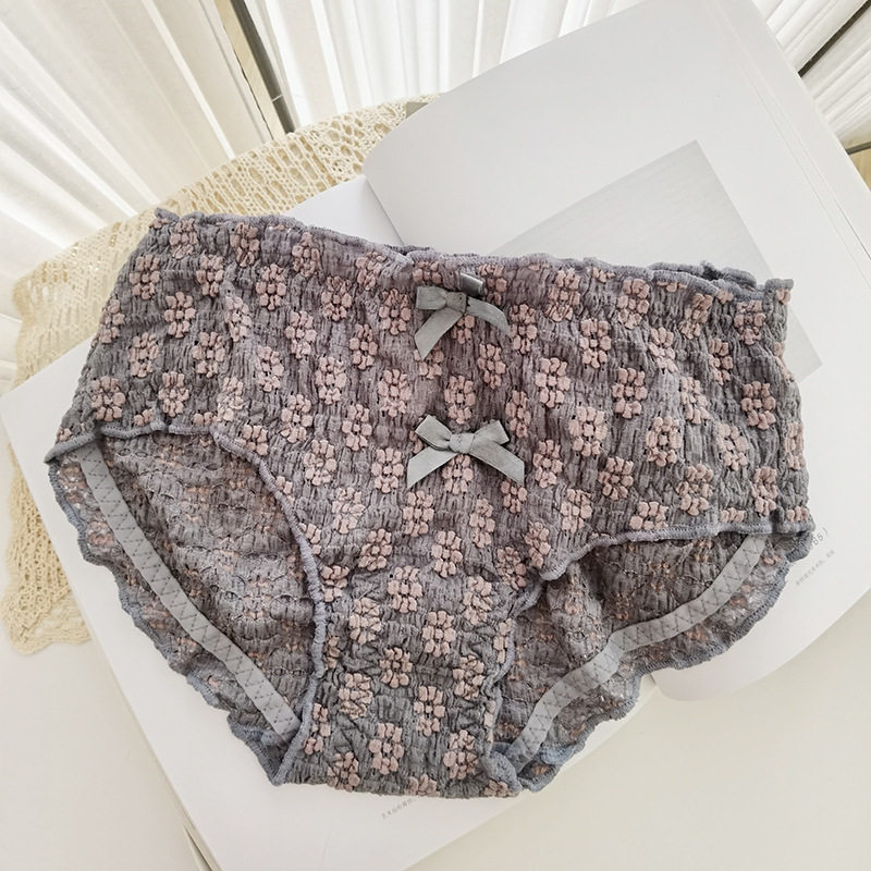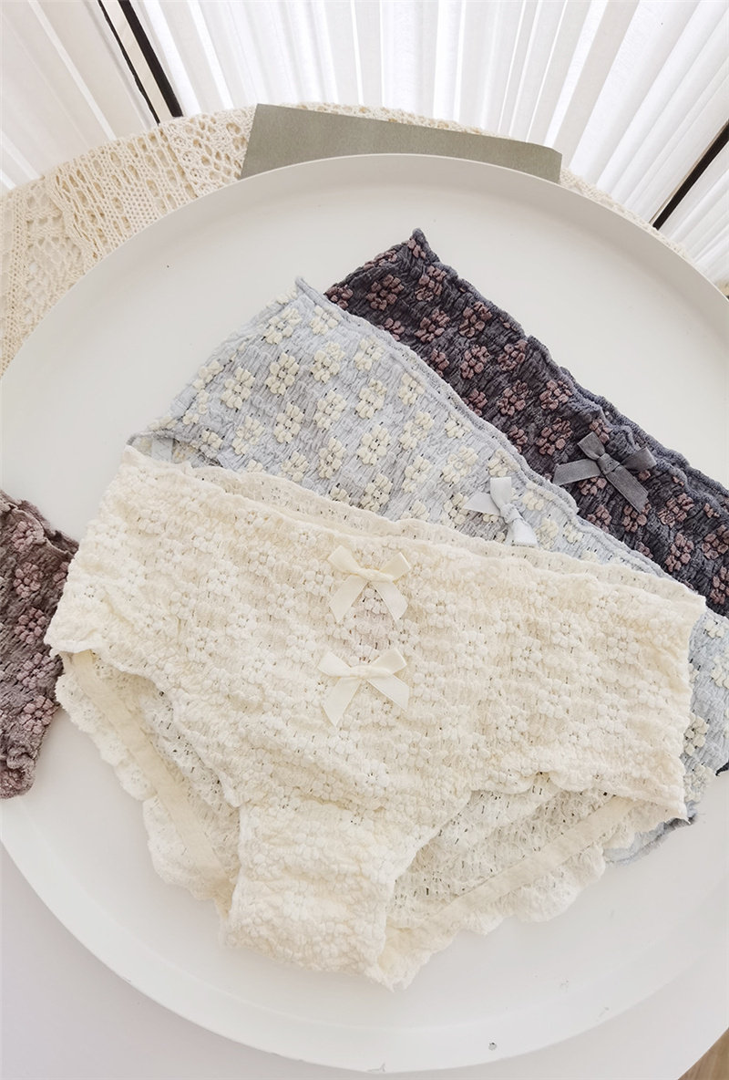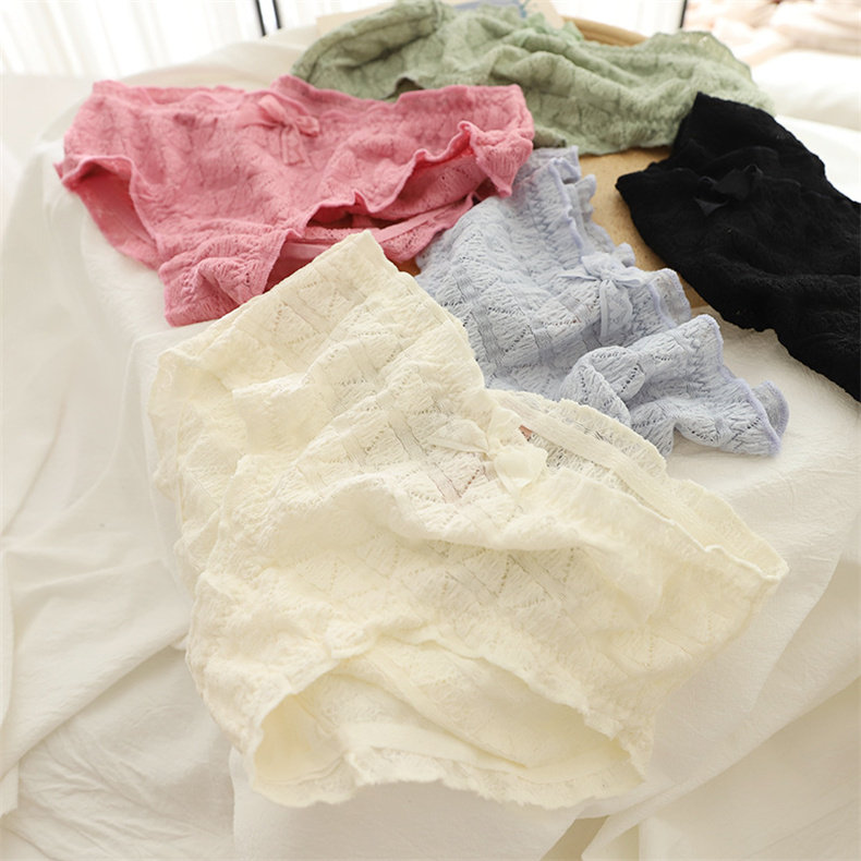 Мягкое, приятное для кожи нижнее белье/короткие трусы со средней талией и объемным кружевом с полыми пузырьками