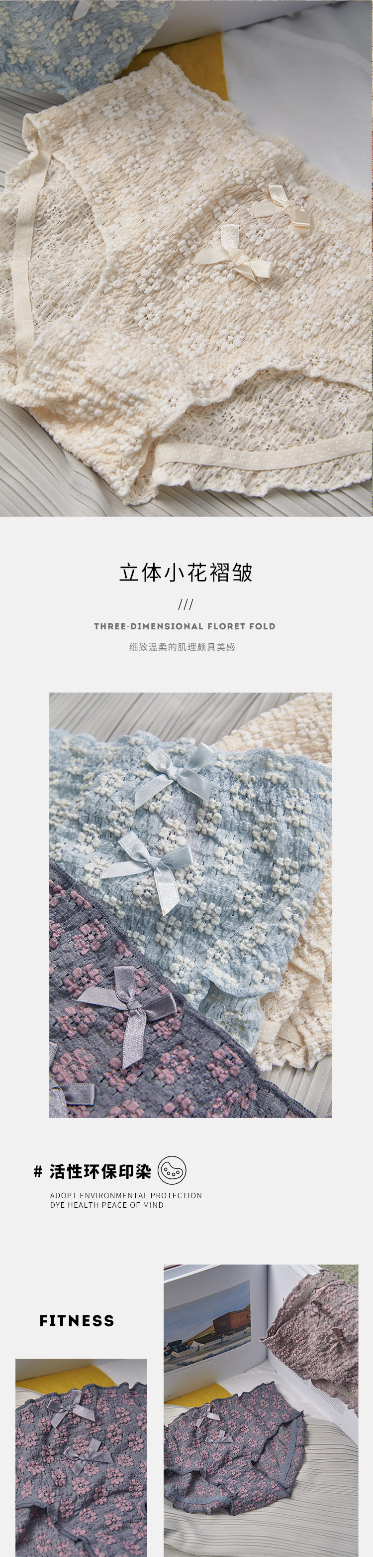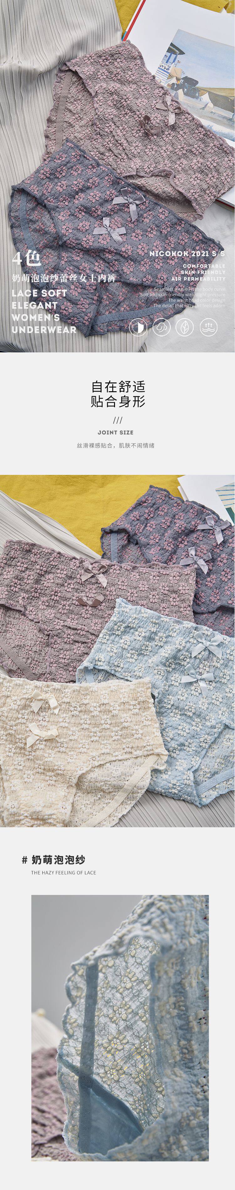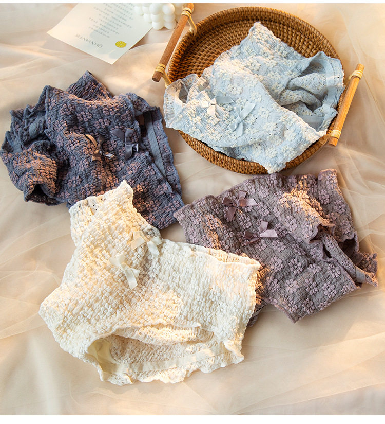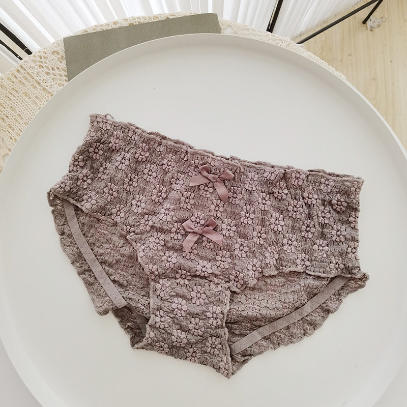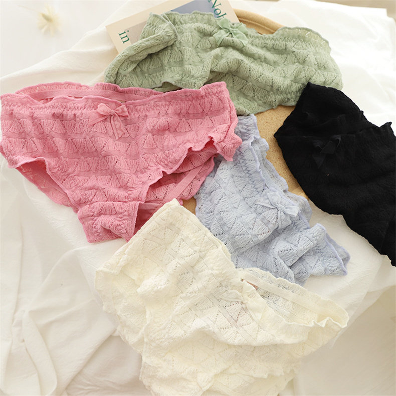 Мягкое, приятное для кожи нижнее белье/короткие трусы со средней талией и объемным кружевом с полыми пузырьками