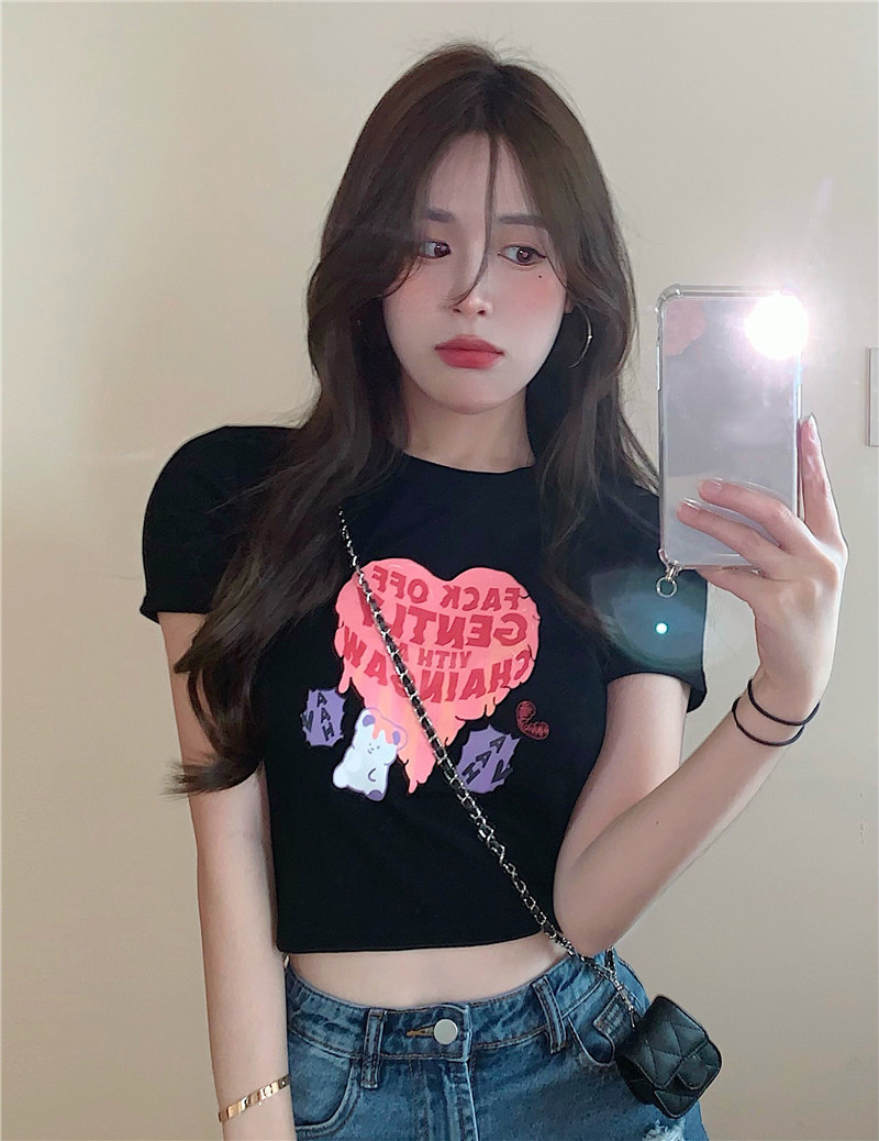 Tide, летняя короткая приталенная черная футболка, высокая талия, короткий рукав