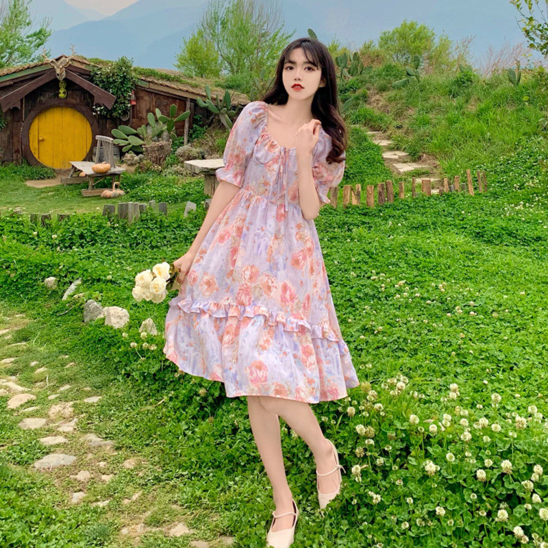 Летнее платье, летняя одежда, модная длинная юбка, французский стиль, по фигуре, большой размер