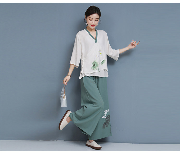 Летние этнические ретро штаны, сезон 2021, этнический стиль, из хлопка и льна, свободный крой