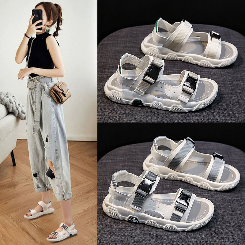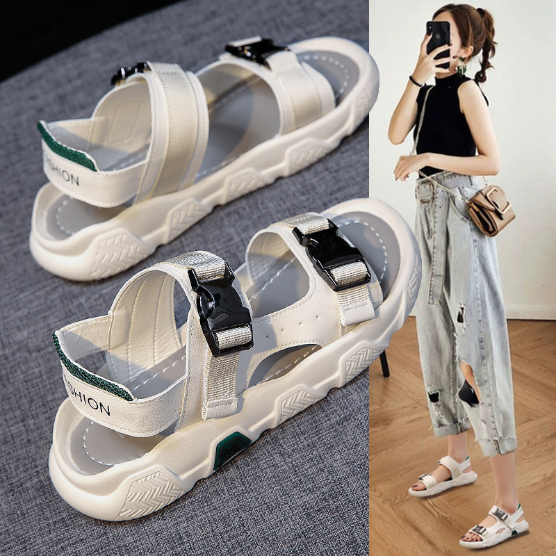 Сандалии, летняя модная универсальная плоская подошва обувь для отдыха, 2021 года, популярно в интернете, мягкая подошва