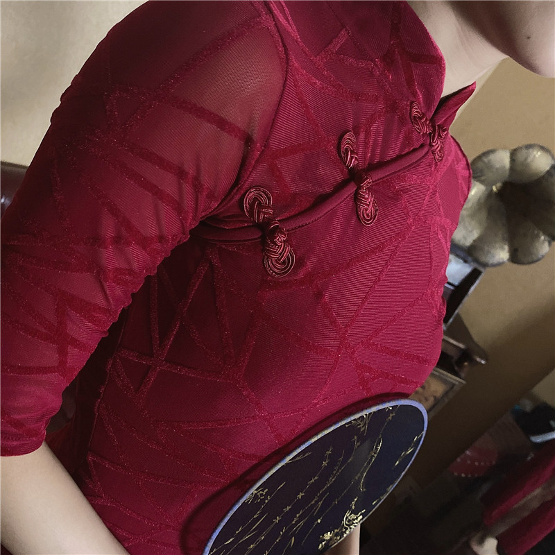 | Цвет: | Jiu Red Relbon Cheongsam [водите пух, чтобы осторожно стрелять], Боди, топ с чашечками, Однотонный чонсам бордового цвета [без флокирования] |
