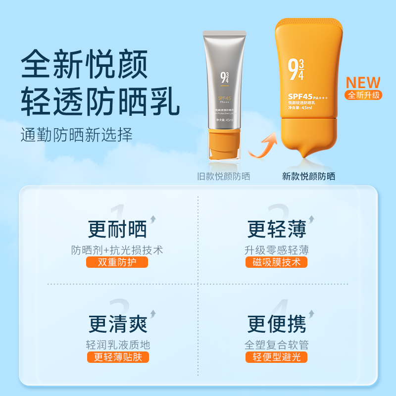Прозрачный увлажняющий солнцезащитный крем, SPF45, УФ-защита, 45 мл