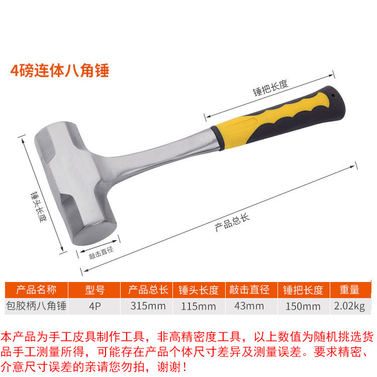 | Классификация цветов: | Углеродистая сталь, интегрированная сквозь ручку сердца тяжелый восьмиугольный молот 1 фунт (около двух кг) |
