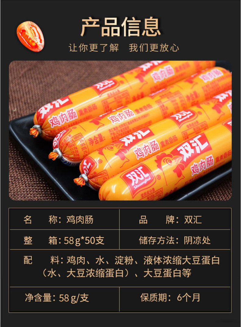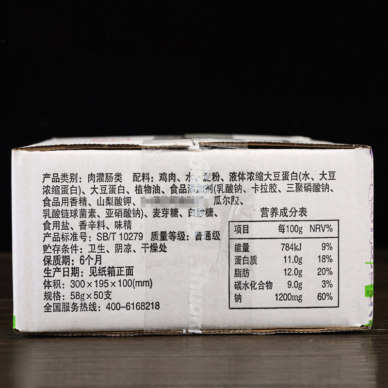 双汇 Куриный аромат копченый и вареная колбаса целая коробка 58 г*20