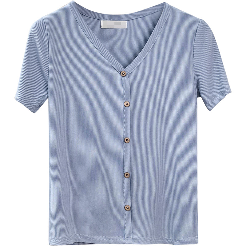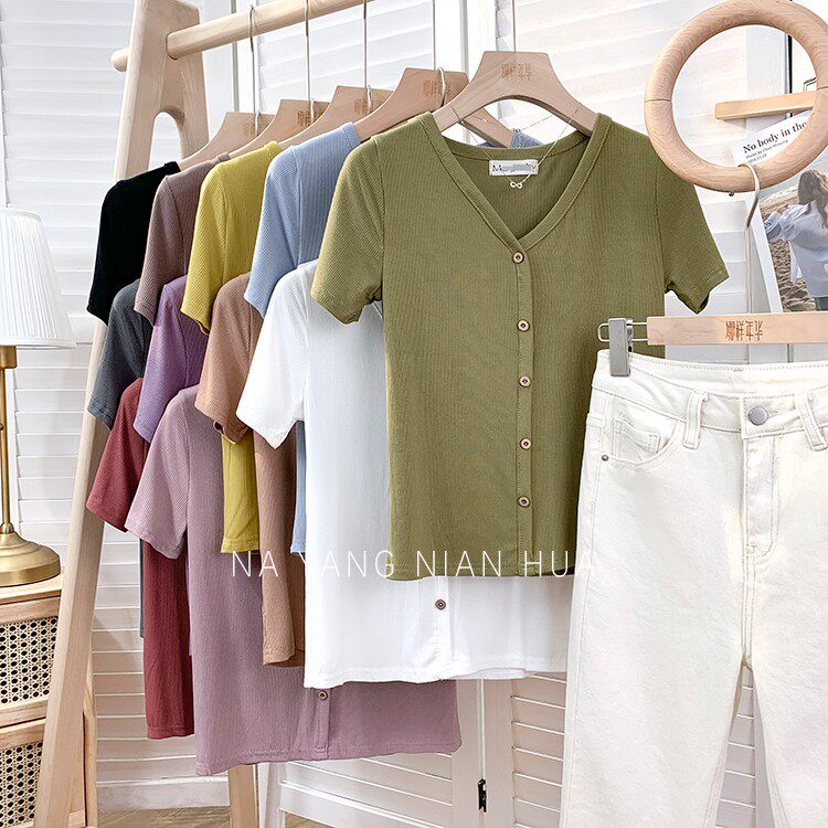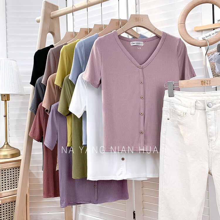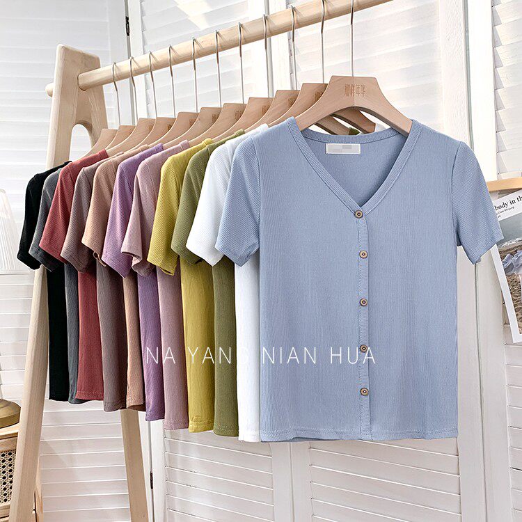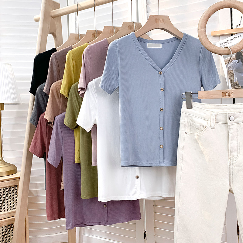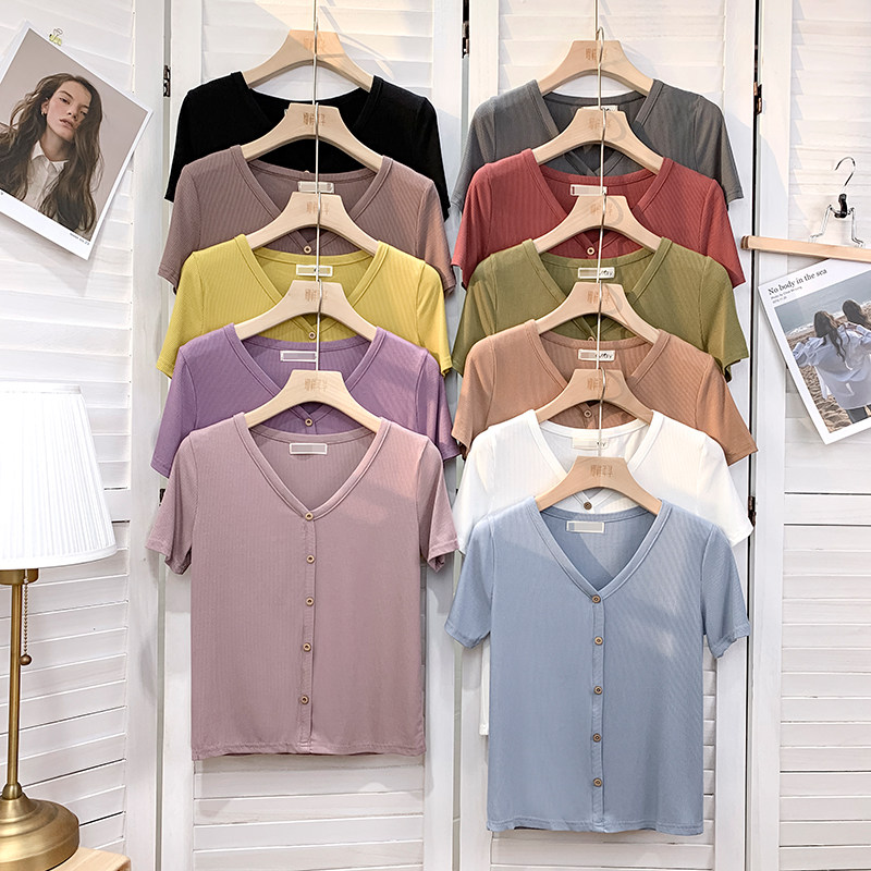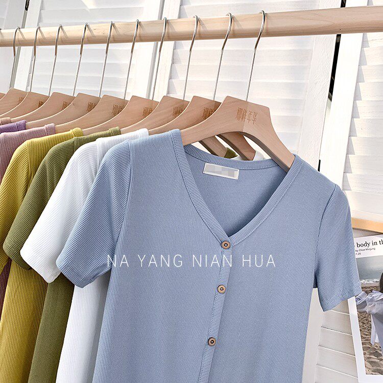 Tide, трикотажная летняя ретро футболка, в корейском стиле, короткий рукав, с рукавом, V-образный вырез