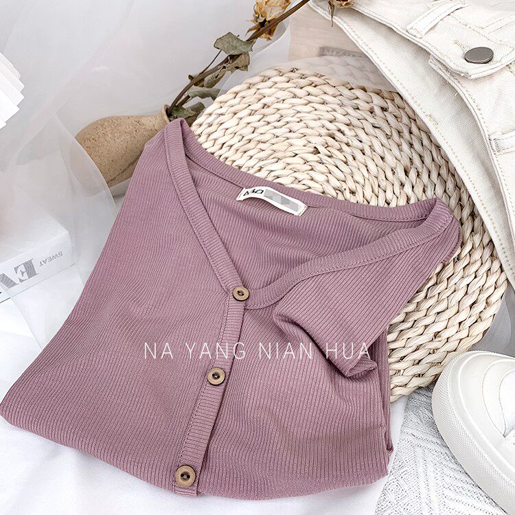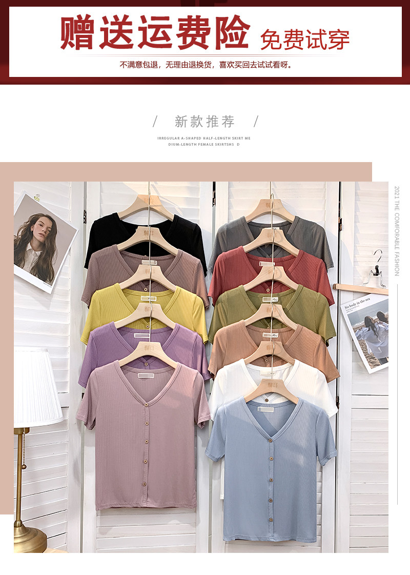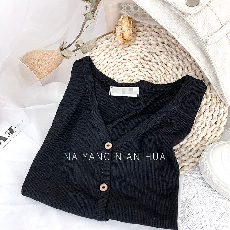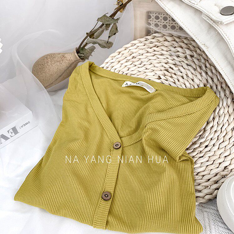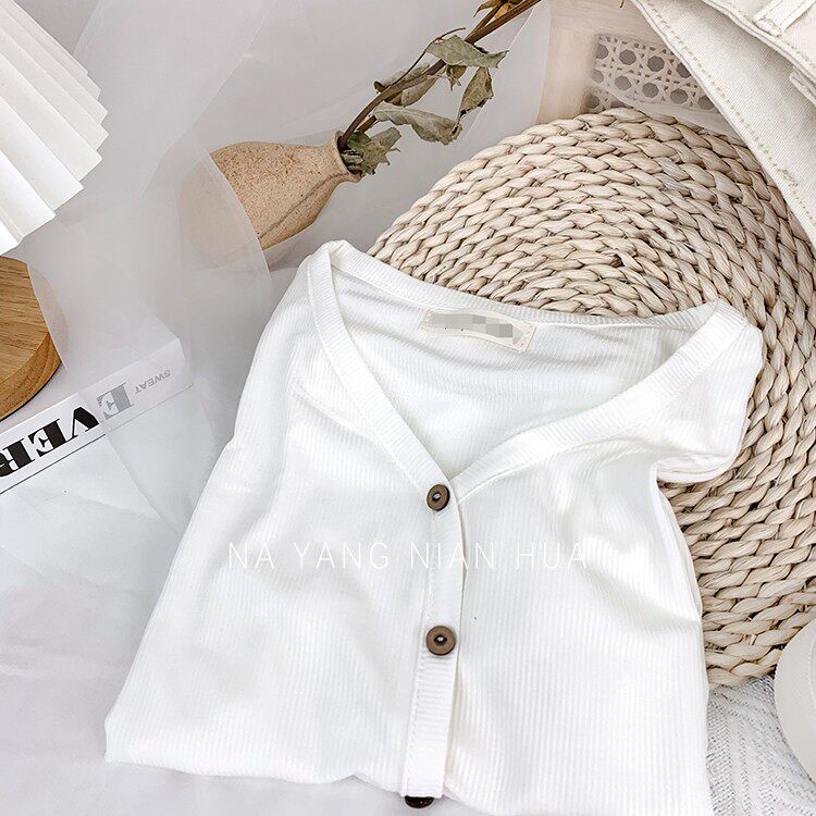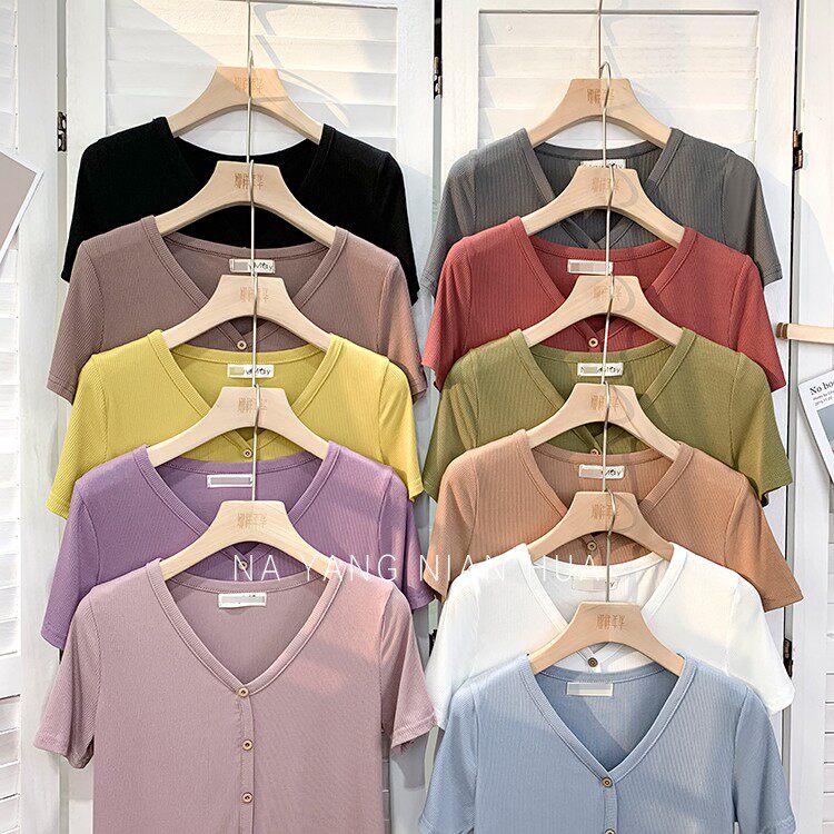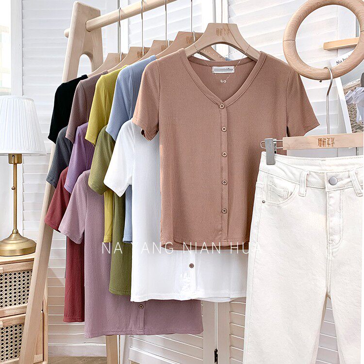 Tide, трикотажная летняя ретро футболка, в корейском стиле, короткий рукав, с рукавом, V-образный вырез