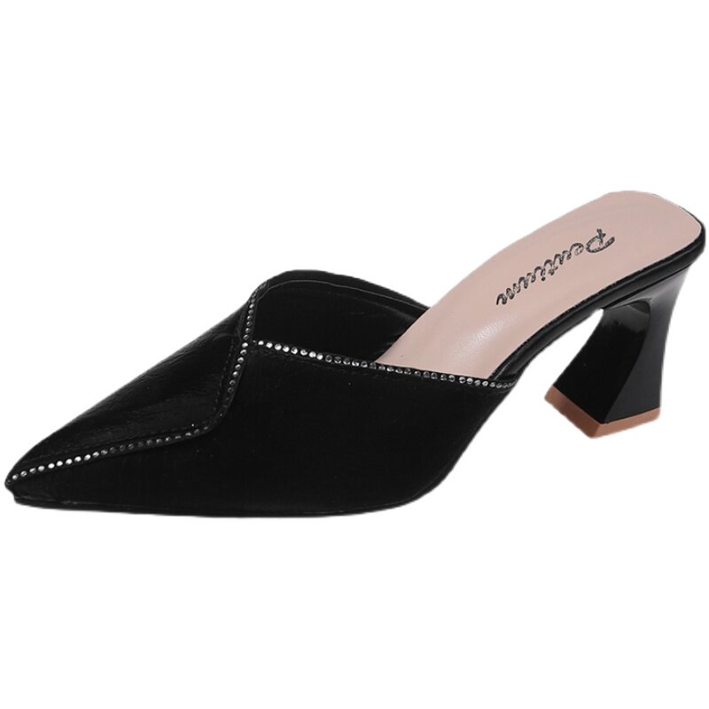 Тапочки, модная летняя обувь, слайдеры с заостренным носом на высоком каблуке, популярно в интернете, 2023