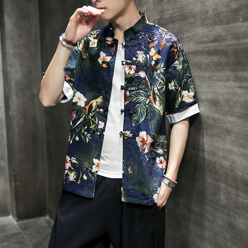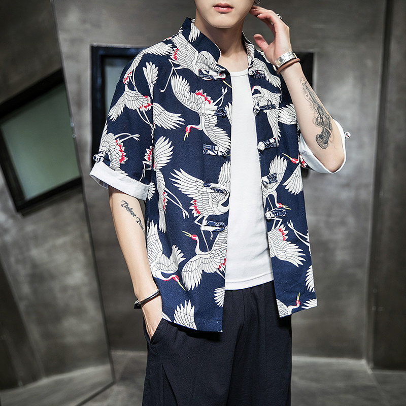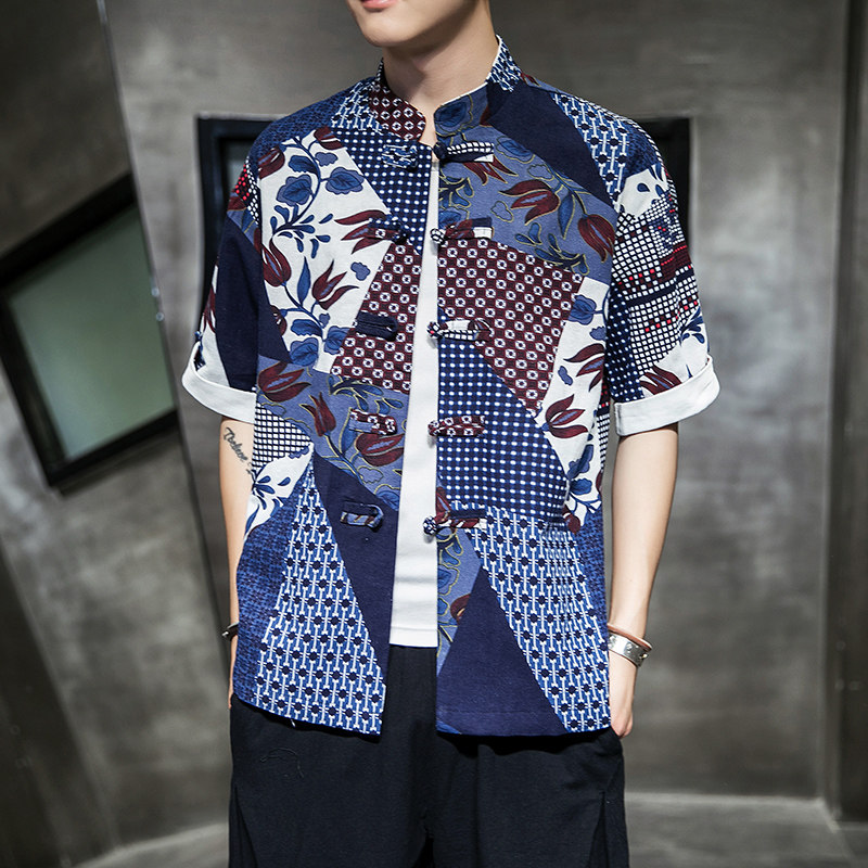Летняя ретро рубашка, китайский стиль, высокий воротник