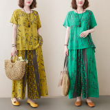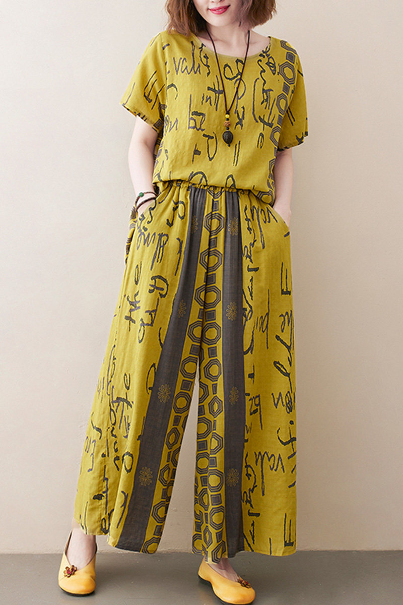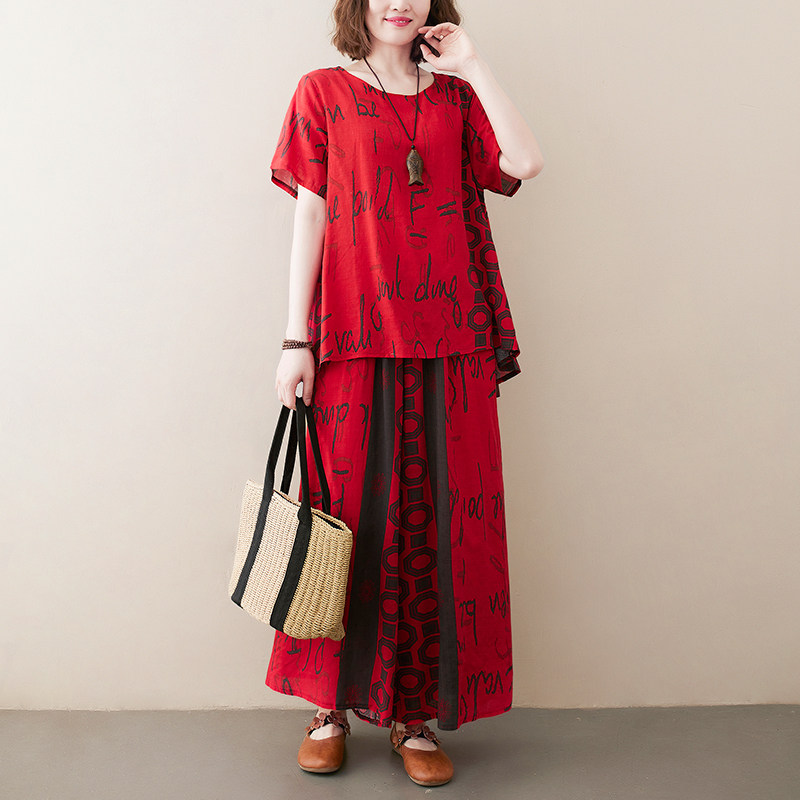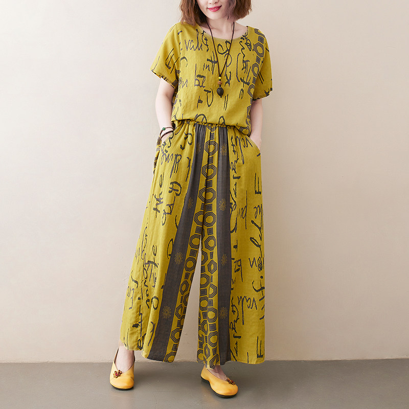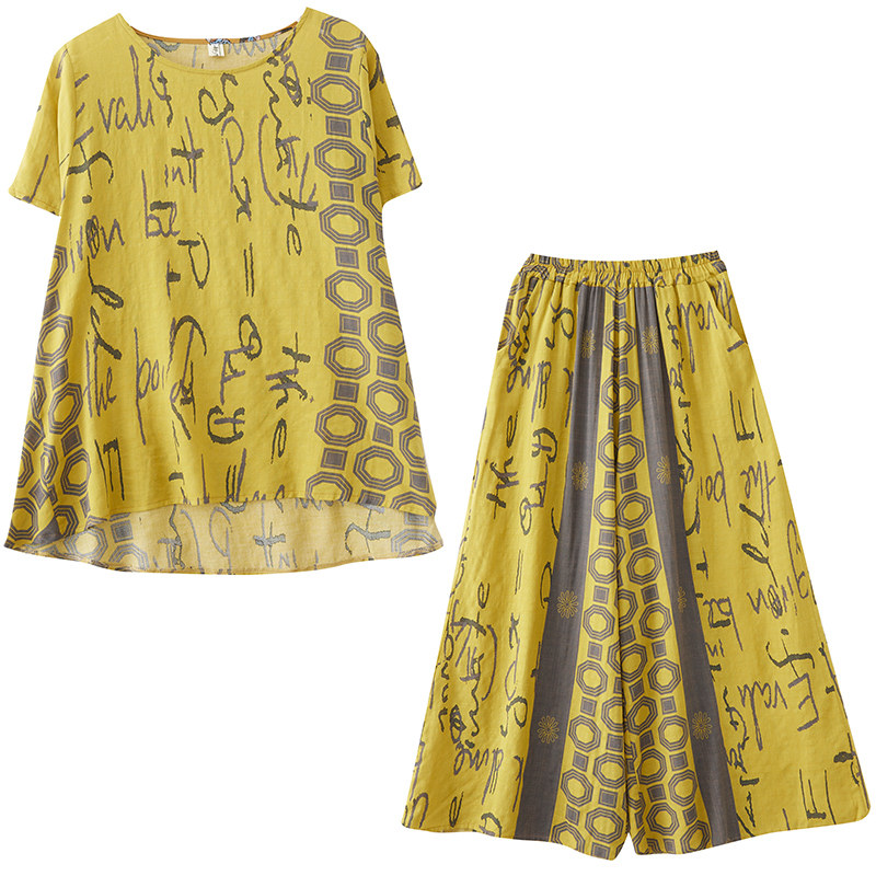 Комплект, летняя одежда, футболка, штаны, в западном стиле, сезон 2021, большой размер
