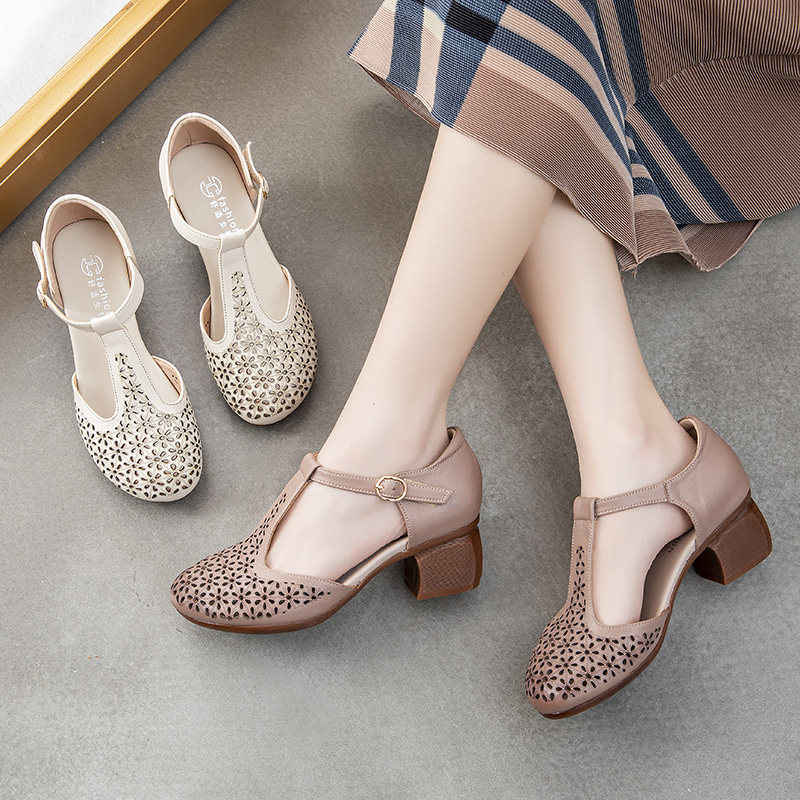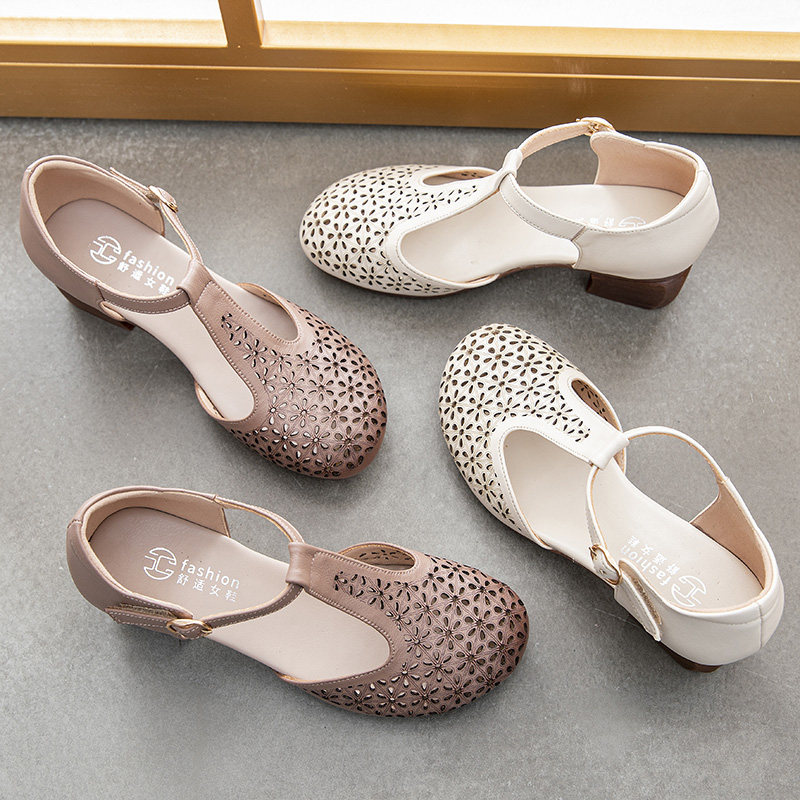 Летние комфортные сандалии для матери для кожаной обуви, мягкая подошва, из натуральной кожи, для среднего возраста