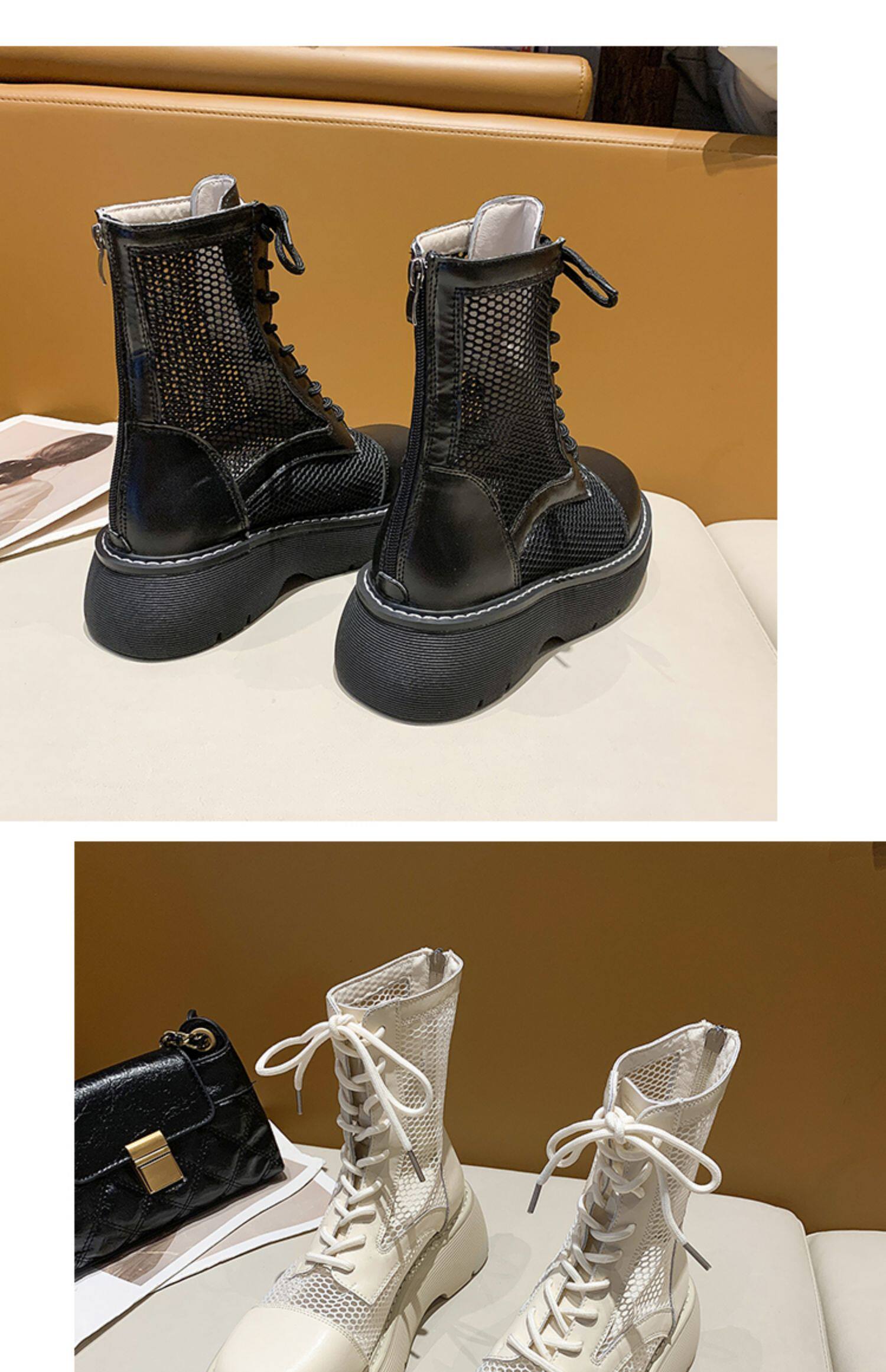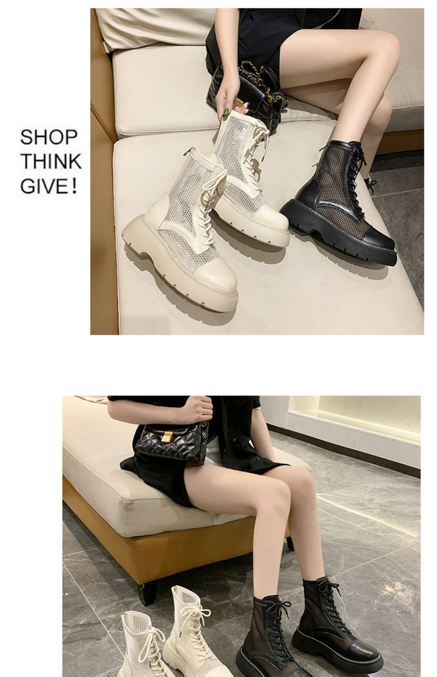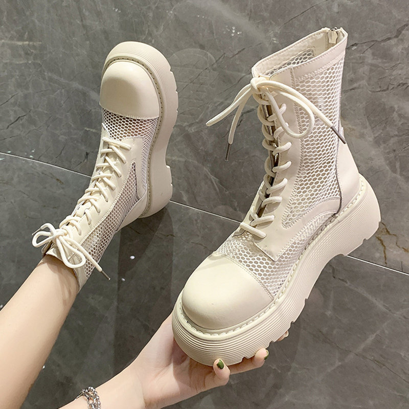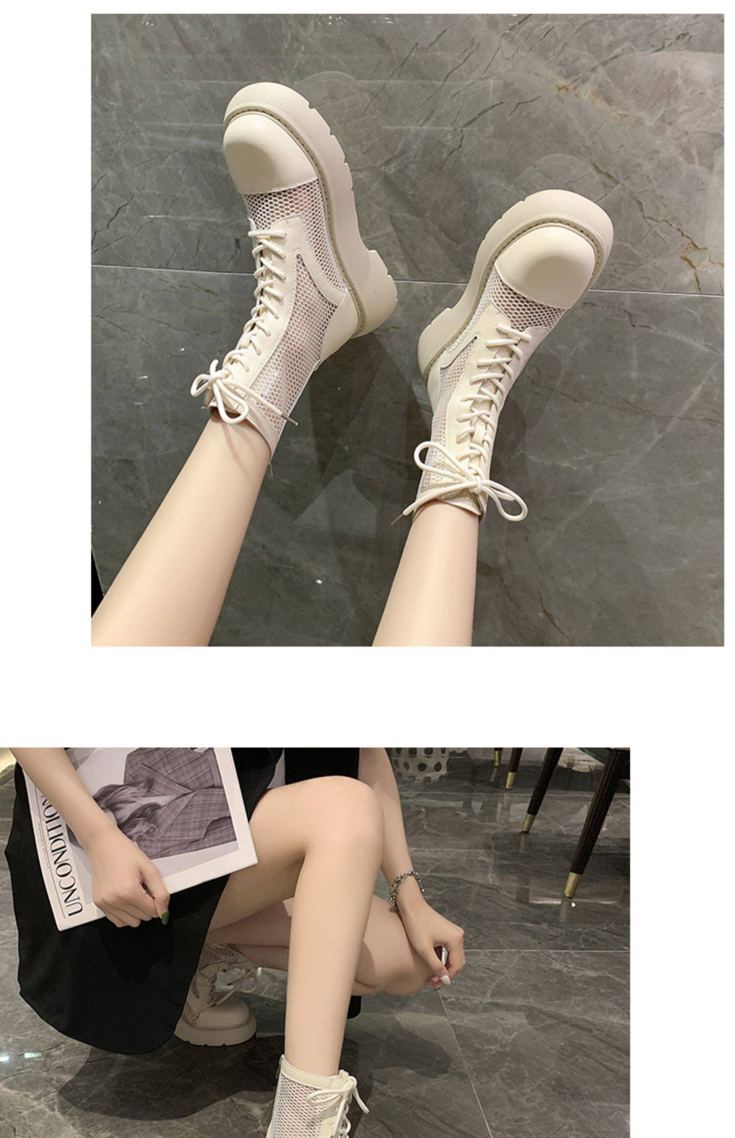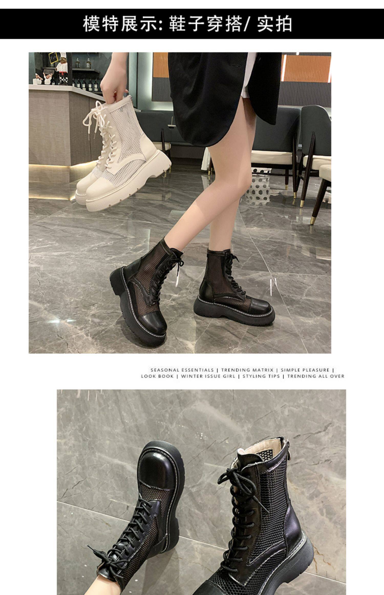 Martens, летние тонкие дышащие белые сетчатые короткие сапоги на платформе, сандалии, 2021 года