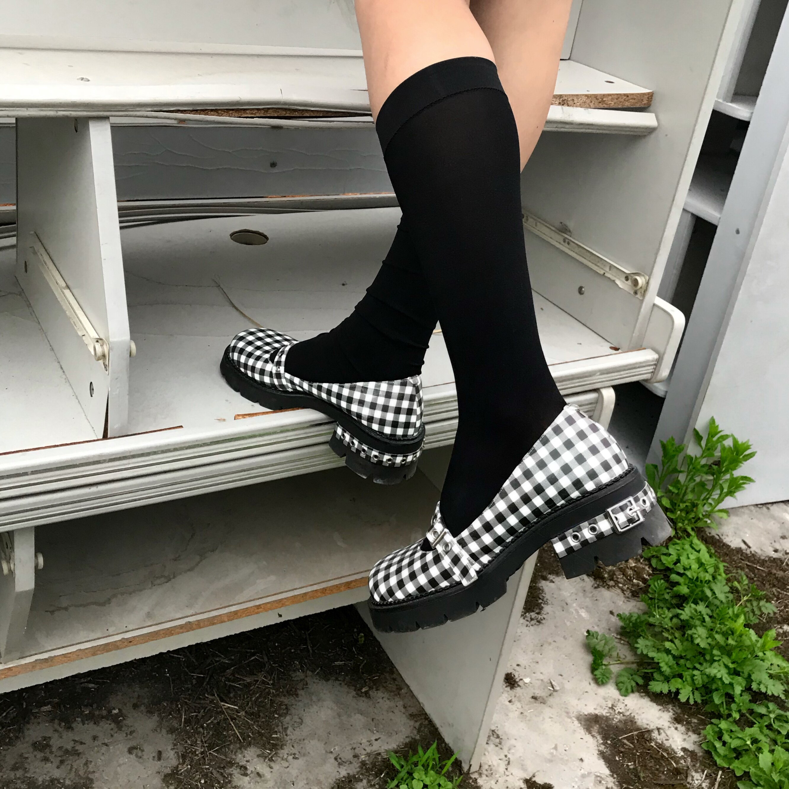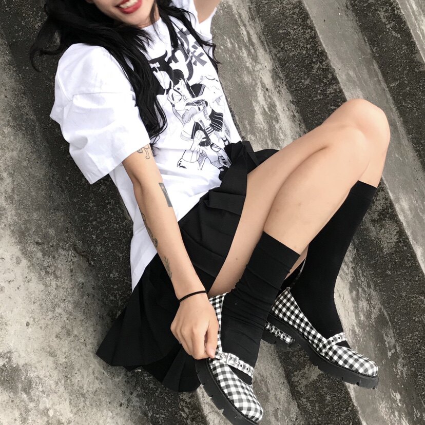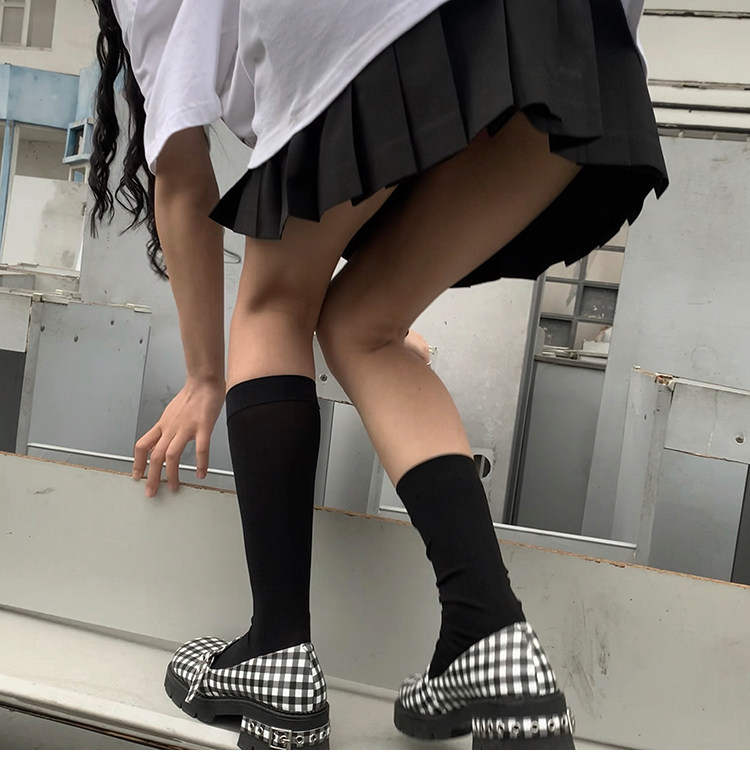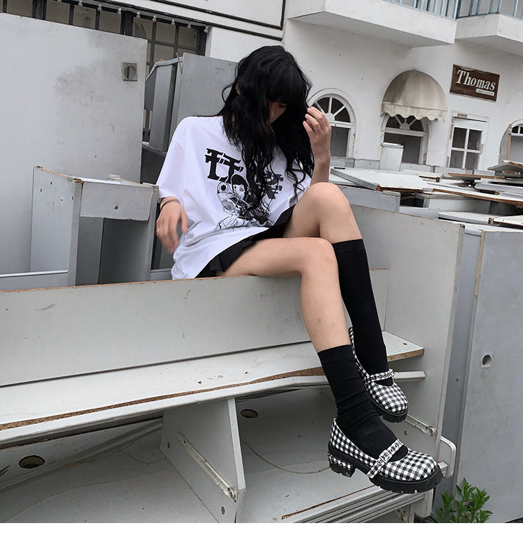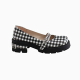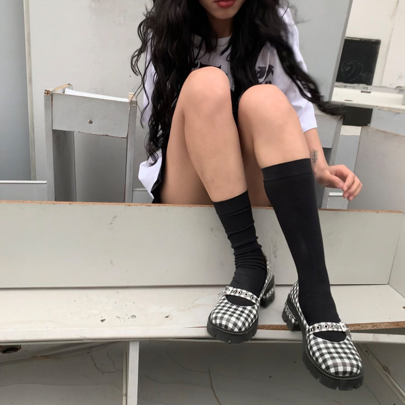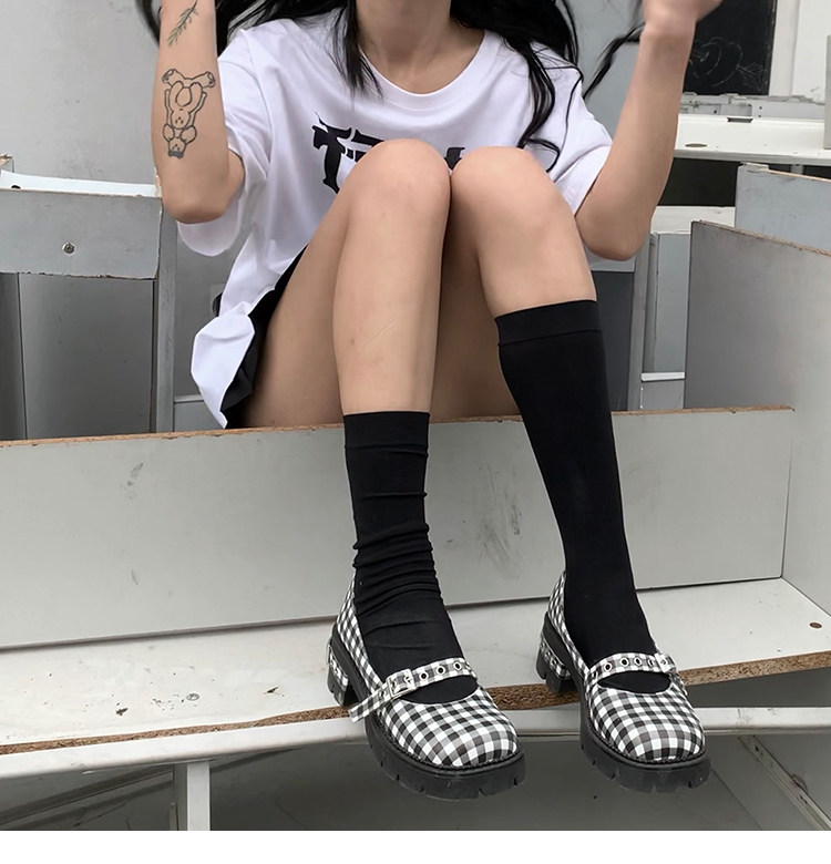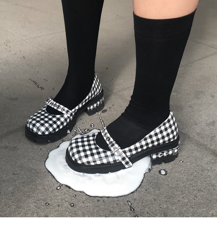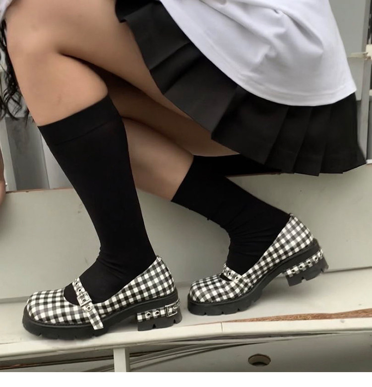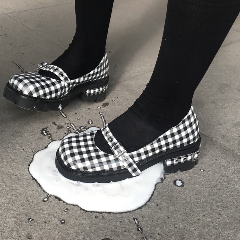 [Шахматная доска для девочек обычно наступает на ноги] Проверка кожаная обувь Мэри Чжэнь Женские высокие каблуки с обувью