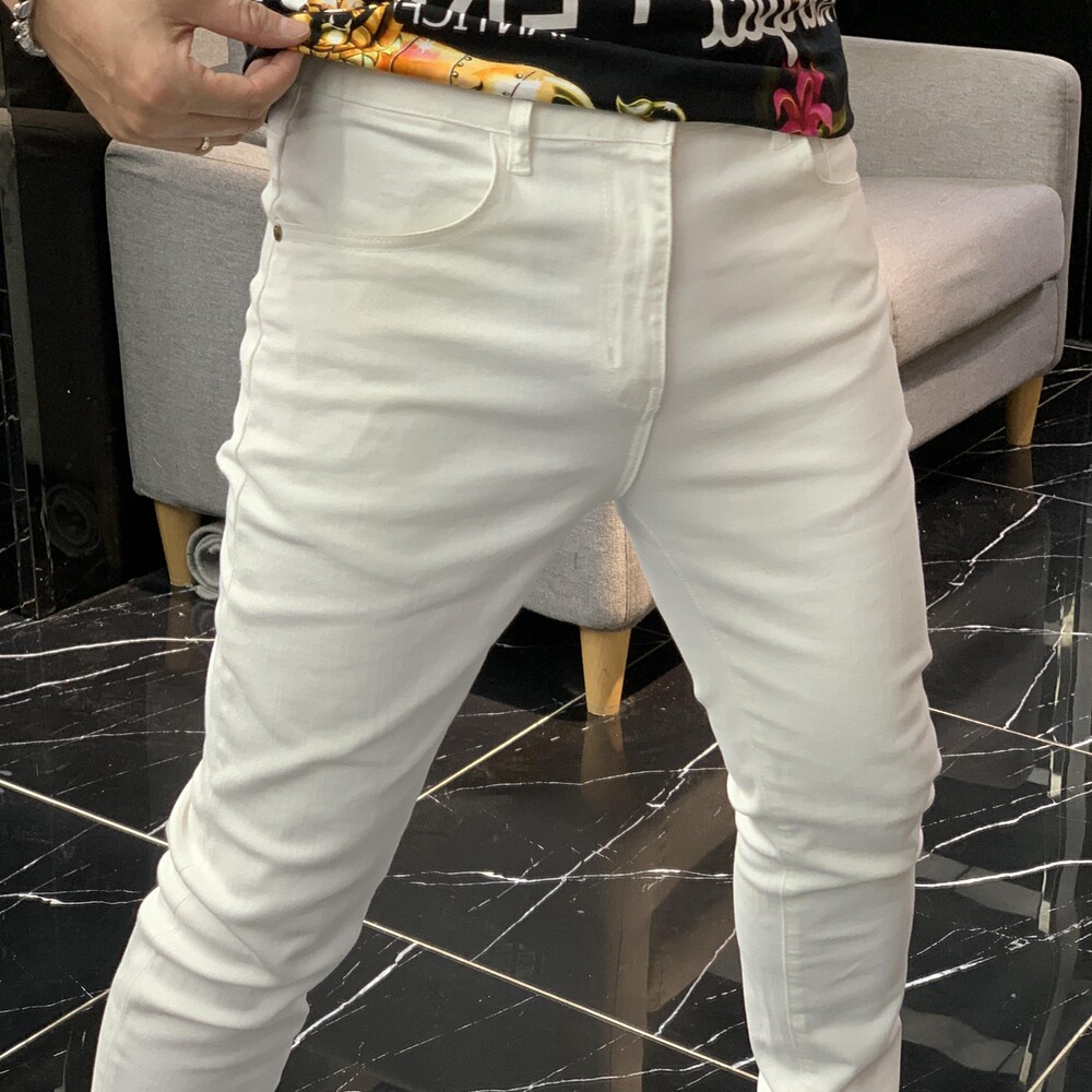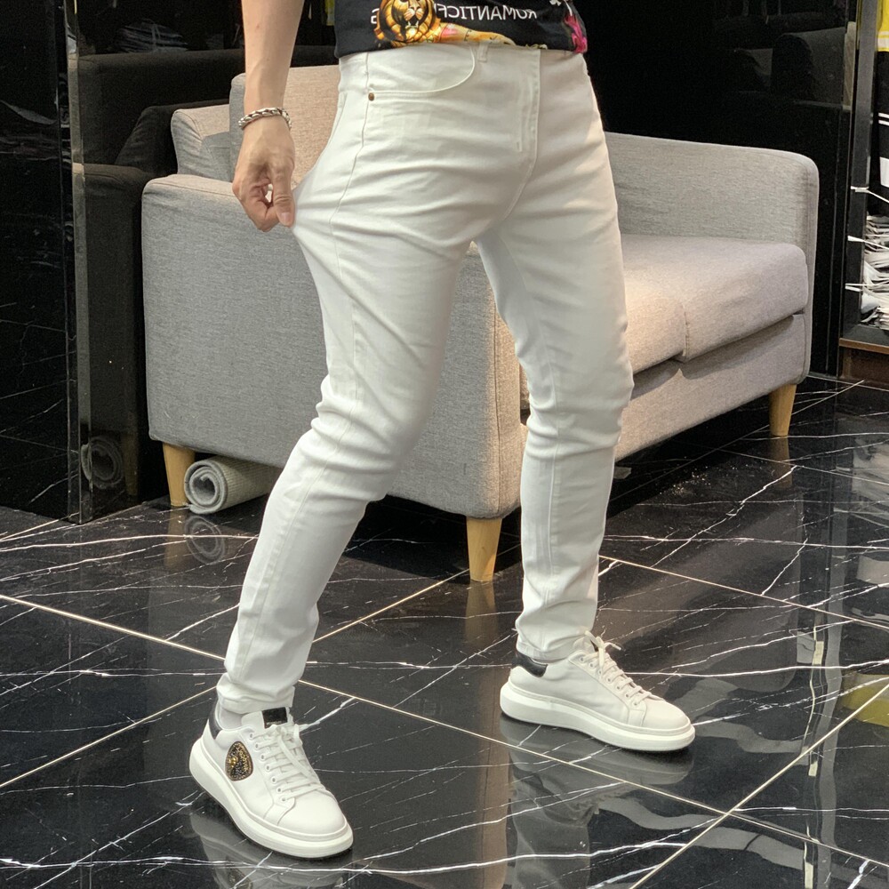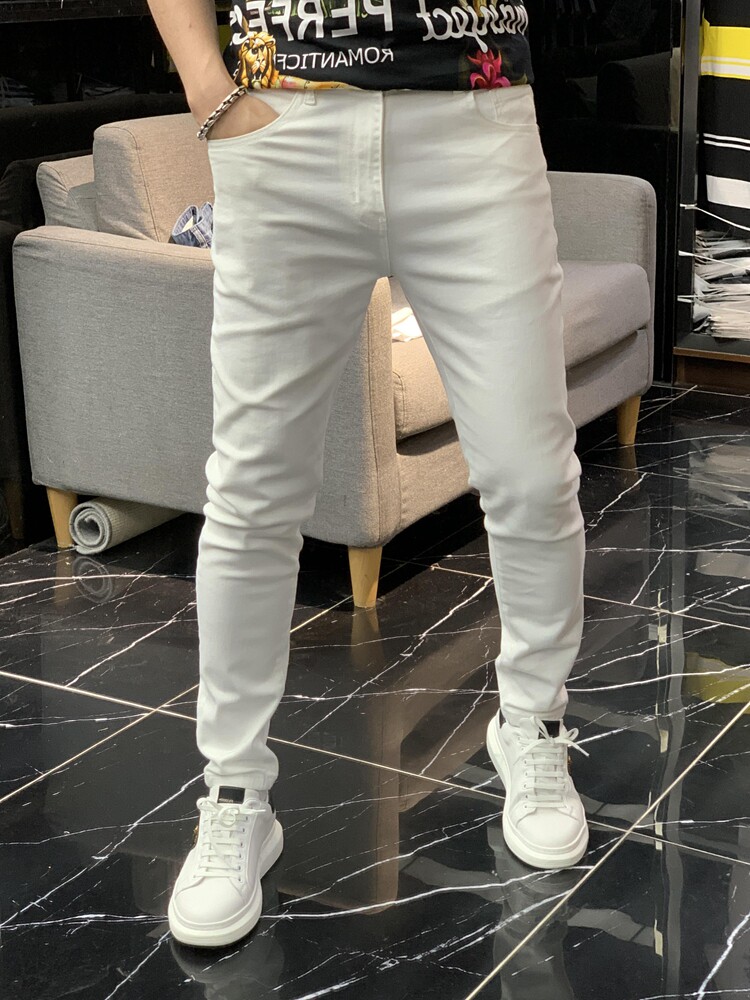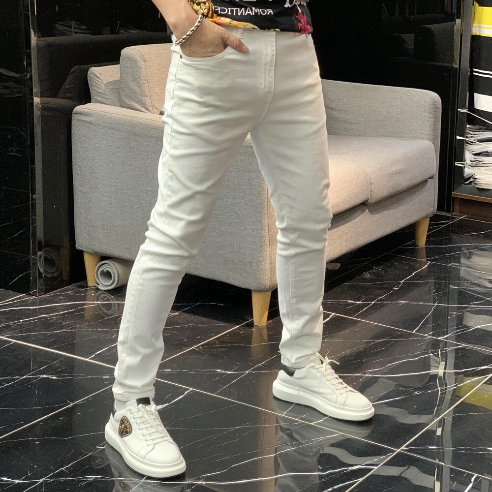 Демисезонные осенние черные эластичные джинсы, белые штаны