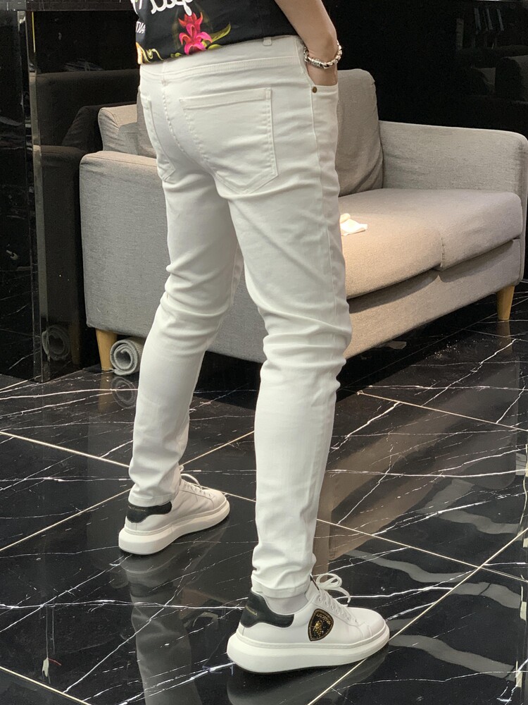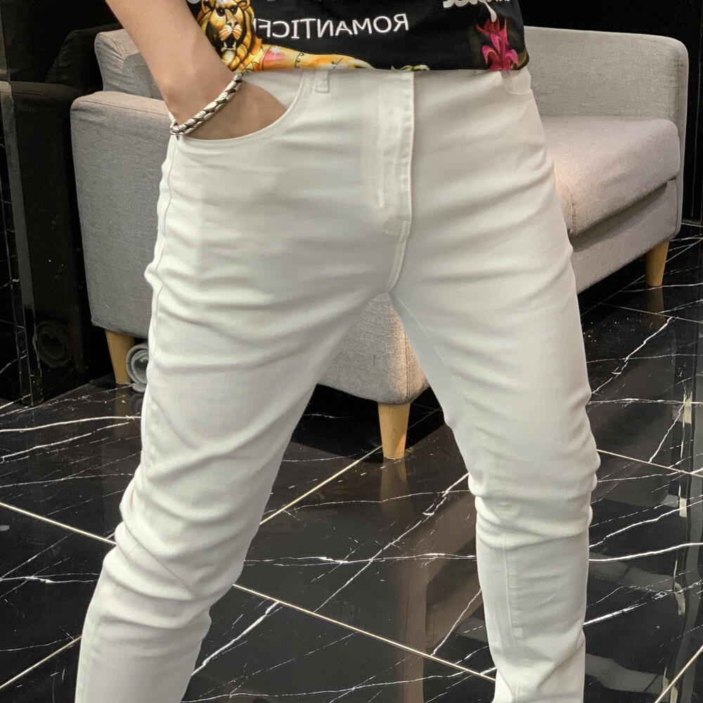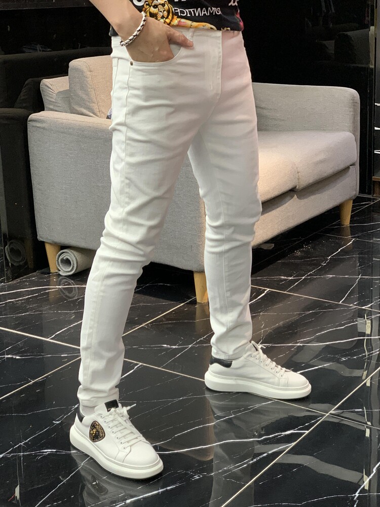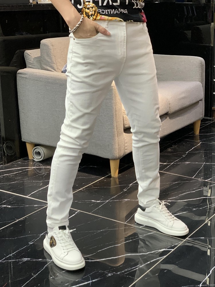 Демисезонные осенние черные эластичные джинсы, белые штаны