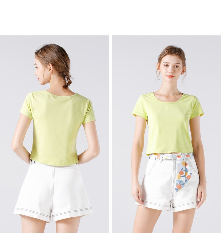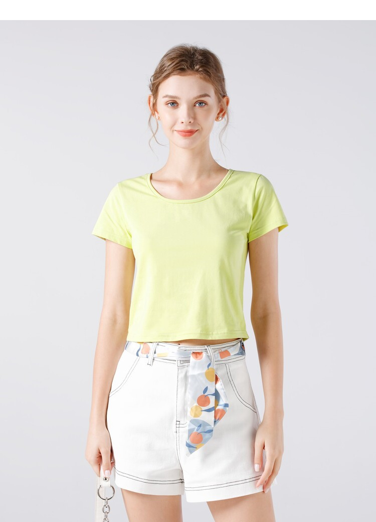 艾米恋 Белая летняя однотонная короткая сексуальная хлопковая футболка, с рукавом, высокая талия