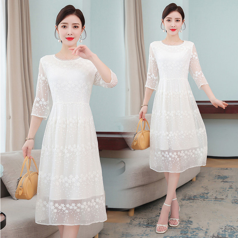 Элитное осеннее платье для матери, белая кружевная юбка, яркий броский стиль, подходит для подростков